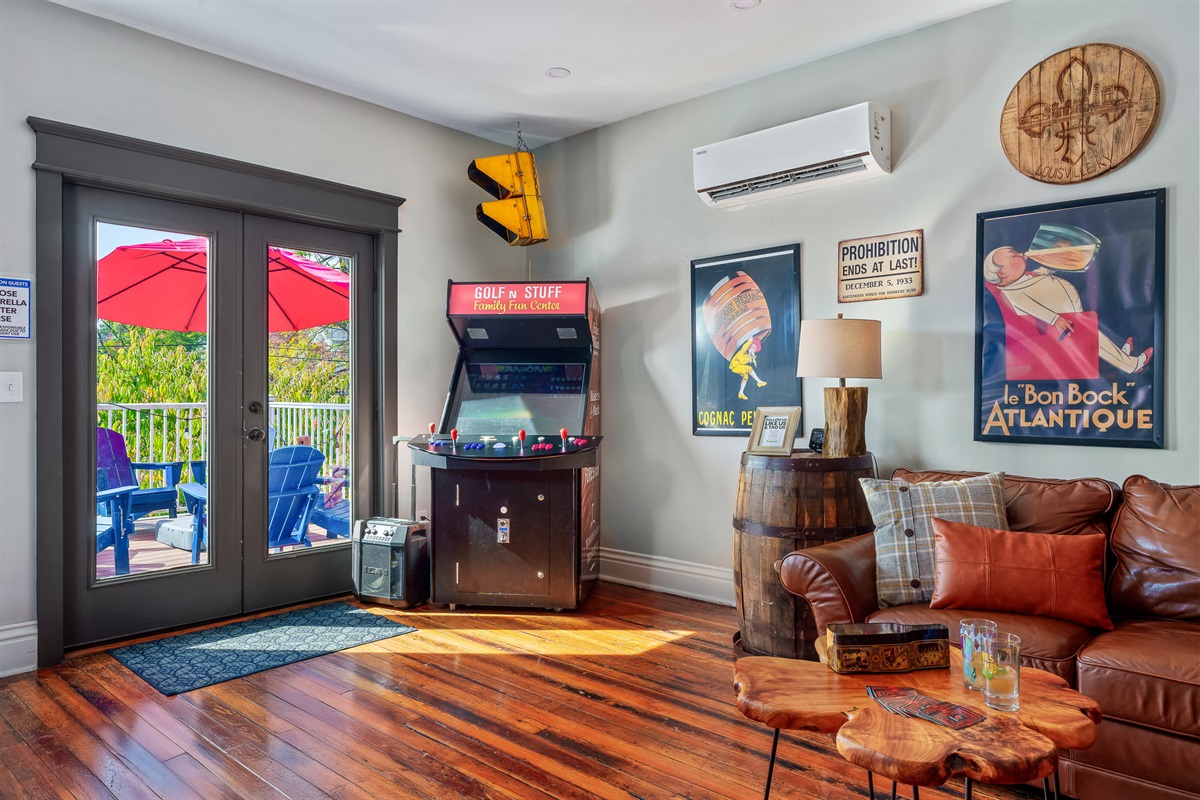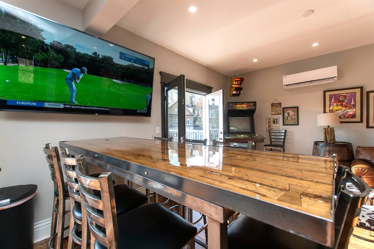 Located on the main strip (Bardstown Road) in the heart of Louisville's Highlands District. The house was built to host large groups. We love love love bachelor and bachelorette groups!! Plenty of space for everyone with six bedrooms eight beds (4 of them KING) and three and half baths. It has a huge deck with BBQ overlooking the strip attached to an open kitchen/living room. You are in walking distance to tons of restaurants/shopping and next door is a bar that is also next to liquor store! The bar next door has karaoke until 2:00 AM Friday and Saturday nights!! We have everything you need to have fun. Oh, and did we mention our Bourbon Lounge has a 75in 4KTV and Golden Tee?! What else do you need to have a great time in Louisville???