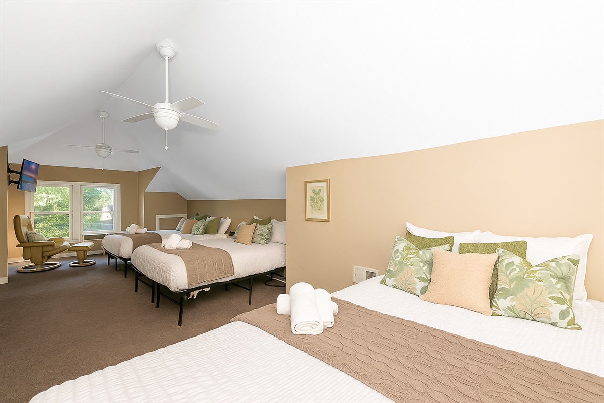 The perfect group vacation getaway. Yes, 3 HUGE PRIMARY SUITES. 6 Bedrooms and 5 Bathrooms total. Lots of room for everyone and 10 beds including 2 Kings, 3 Queens 3 Fulls and 2 queen air beds