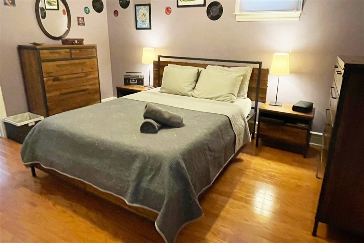 The master bedroom is spacious with plenty of drawer and closet space to make yourself at home. Luxury linens and comfy bedding too.