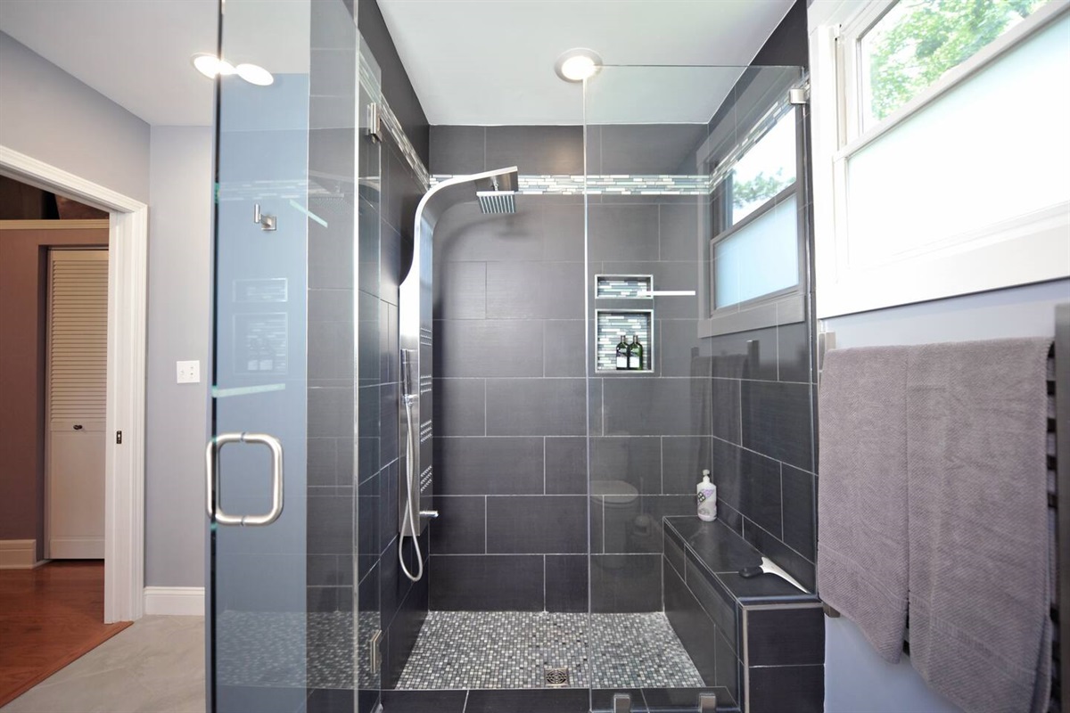 Our home features the original hardwood flooring, transom windows, raised ceilings/doorways with most of the original trim-work. We’ve added on the master spa bathroom featuring heated floors and towel rack and large modern glass enclosed shower. All super high end.