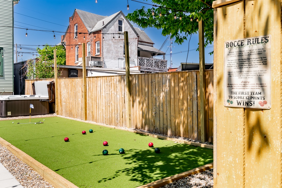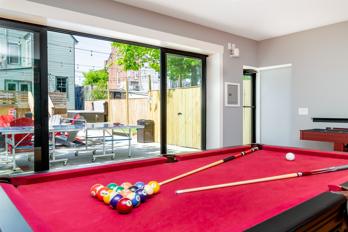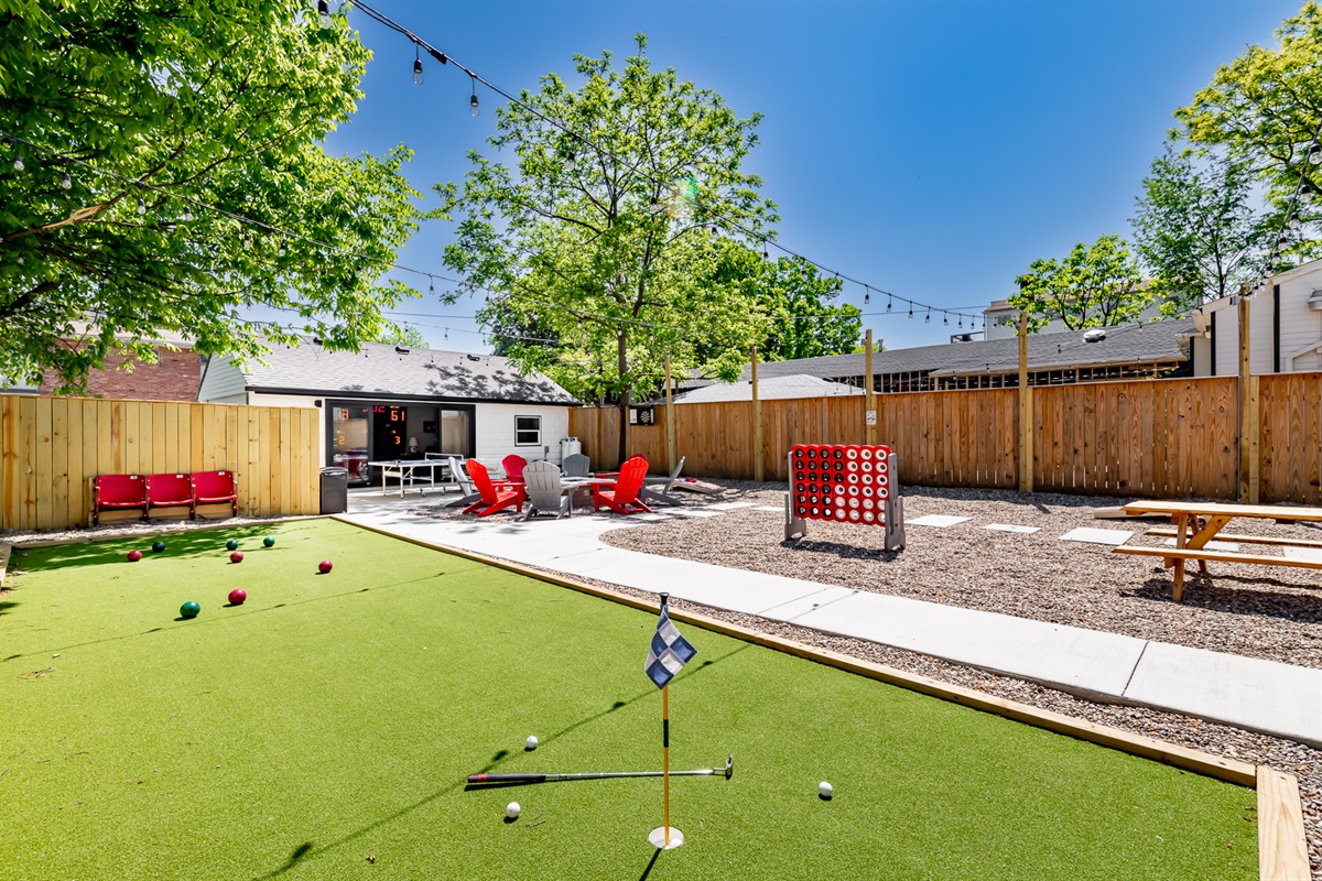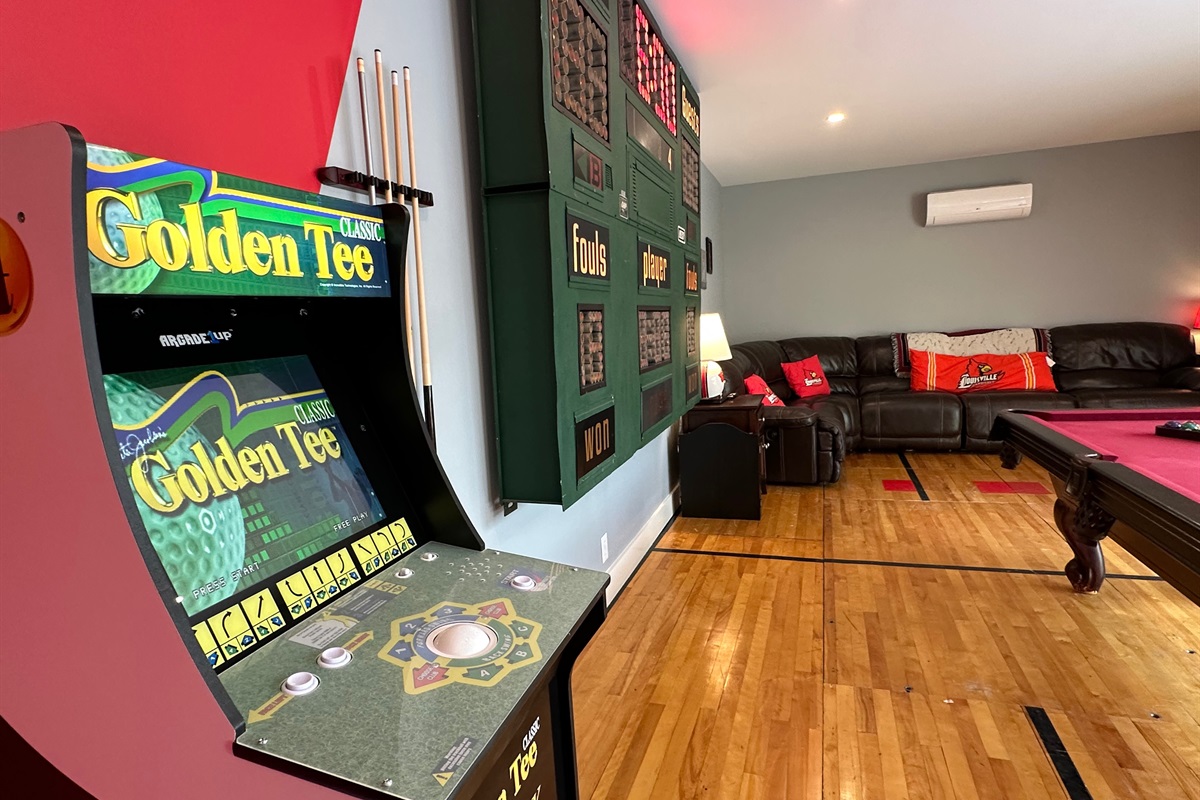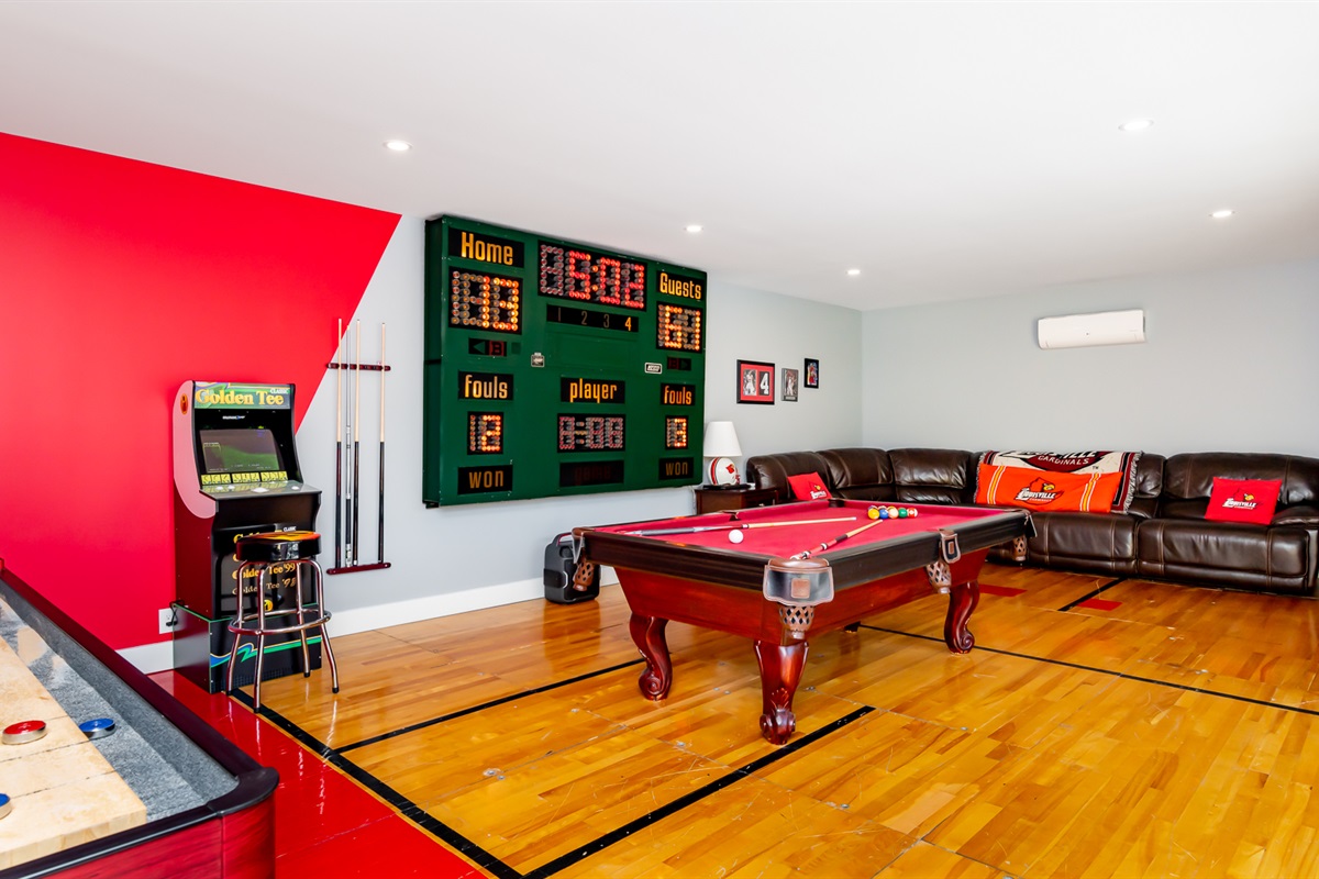 BNB Louisville presents: Courtside, Ville's HOTTEST new sensation. We've taken all the best features from our premier properties and created one Ultra Destination in the heart of the Highlands. It is absolute perfection for large groups. Tons of space for everyone. But the best part is all of the unbelievable amenities. The main home is 3 stories boasting 6 large bedrooms and 4 bathrooms. High end decor, a primary bedroom suite with spa like bathroom right out of a catalog. The custom kitchen is a dream! But then...step out back and welcome to wonderland. Our huge private courtyard features hot tub, fire pit, bocce ball and putting green...yes an ACTUAL PUTTING GREEN. But that's not even the best part. We built a private sports lounge just for you! A 600 sq foot game room anchors the rear of the property. Open up the glass sliding wall and inside you will find your own sports lounge with pool table, shuffle board, arcade system with GoldenTee and a lounger sofa to catch a game on the huge 4K TV. This place is RIDICULOUS!