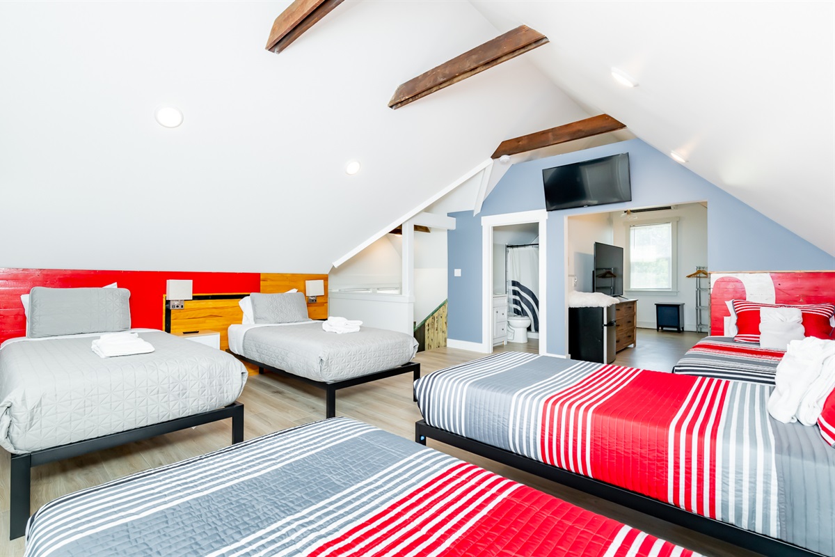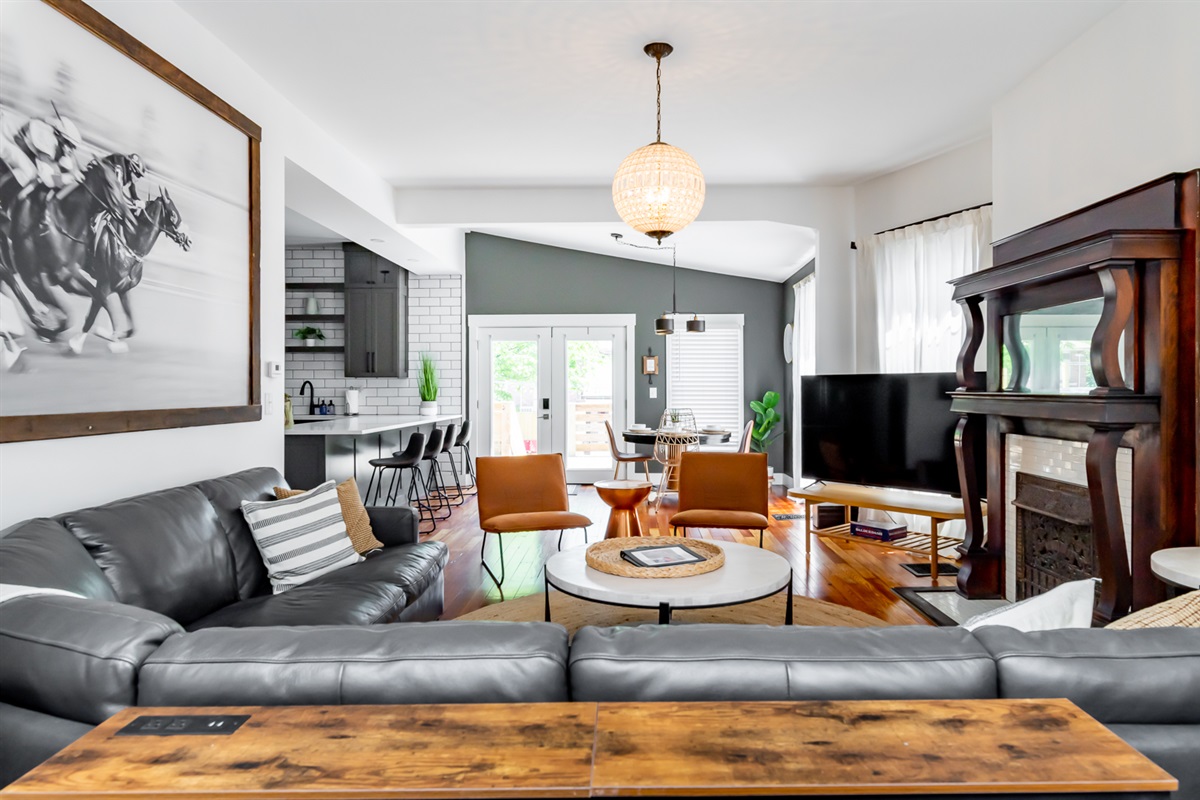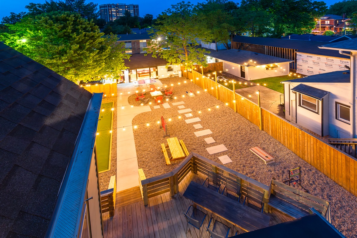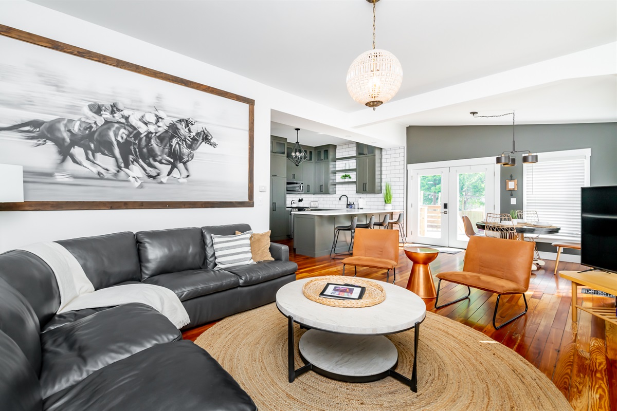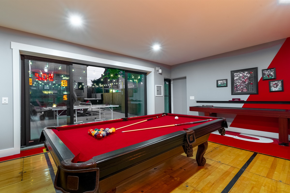 BNB Louisville presents: Courtside, Ville's HOTTEST new sensation. We've taken all the best features from our premier properties and created one Ultra Destination in the heart of the Highlands. It is absolute perfection for large groups. Tons of space for everyone. But the best part is all of the unbelievable amenities. The main home is 3 stories boasting 6 large bedrooms and 4 bathrooms. High end decor, a primary bedroom suite with spa like bathroom right out of a catalog. The custom kitchen is a dream! But then...step out back and welcome to wonderland. Our huge private courtyard features hot tub, fire pit, bocce ball and putting green...yes an ACTUAL PUTTING GREEN. But that's not even the best part. We built a private sports lounge just for you! A 600 sq foot game room anchors the rear of the property. Open up the glass sliding wall and inside you will find your own sports lounge with pool table, shuffle board, arcade system with GoldenTee and a lounger sofa to catch a game on the huge 4K TV. This place is RIDICULOUS!