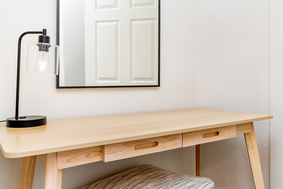 Bedroom 2 (2nd floor): King with TV and workstation