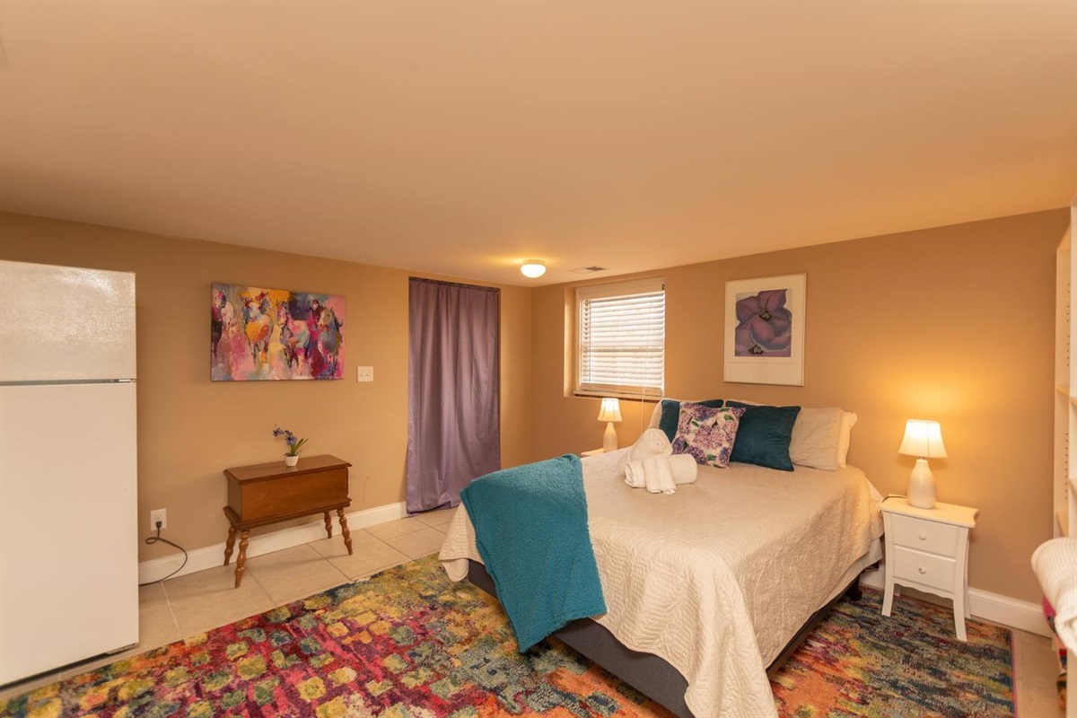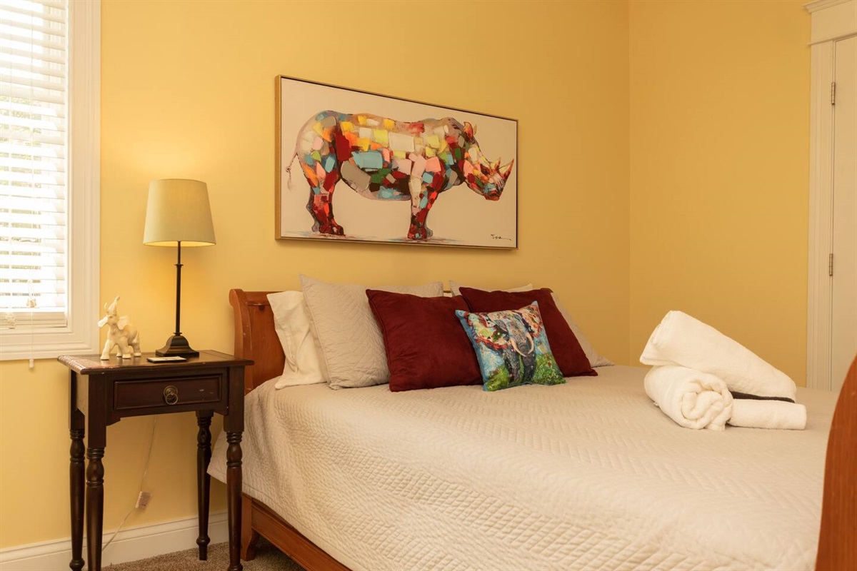 Top Hill is BNB Louisville's expansive home that sleeps 12 and is gorgeous inside! The open kitchen/dining/great room area creates the ultimate entertaining experience for all of your guests. The big granite island stretches over 11 x 4 feet, offering comfortable seating and service space. The open floor plan makes this home perfect for entertaining and holiday gatherings. In a quiet neighborhood that's very convenient to Highlands, St. Matthews, Frankfort Ave, downtown--an upscale setting and comfy base for your visit.