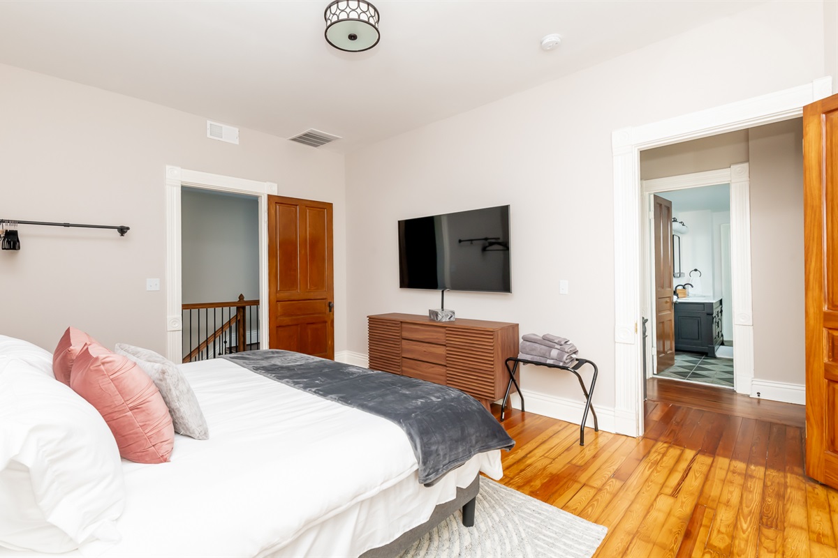 - Second Level - Upstairs you will find three additional bedrooms (2 King, 1 Queen). The primary has an attached writer's nook - perfect for working travels. Bedroom 2 with King. Bedroom 3 with queen. The spacious second floor bath has double sink vanity, glass shower and clawfoot tub!. High end luxury towels , bathroom amenities, and luxury bedding throughout.