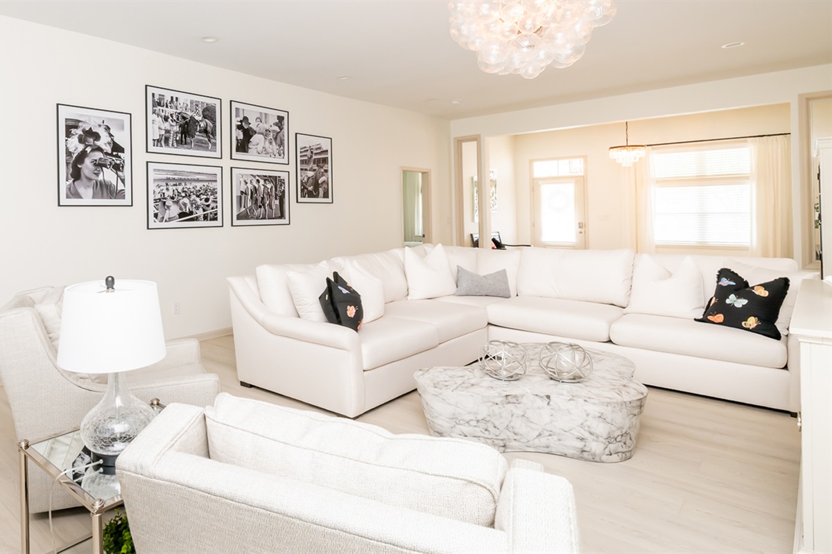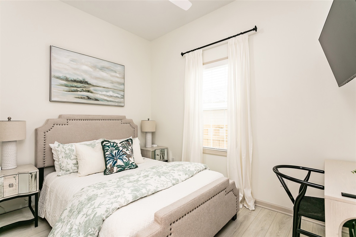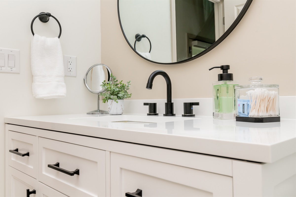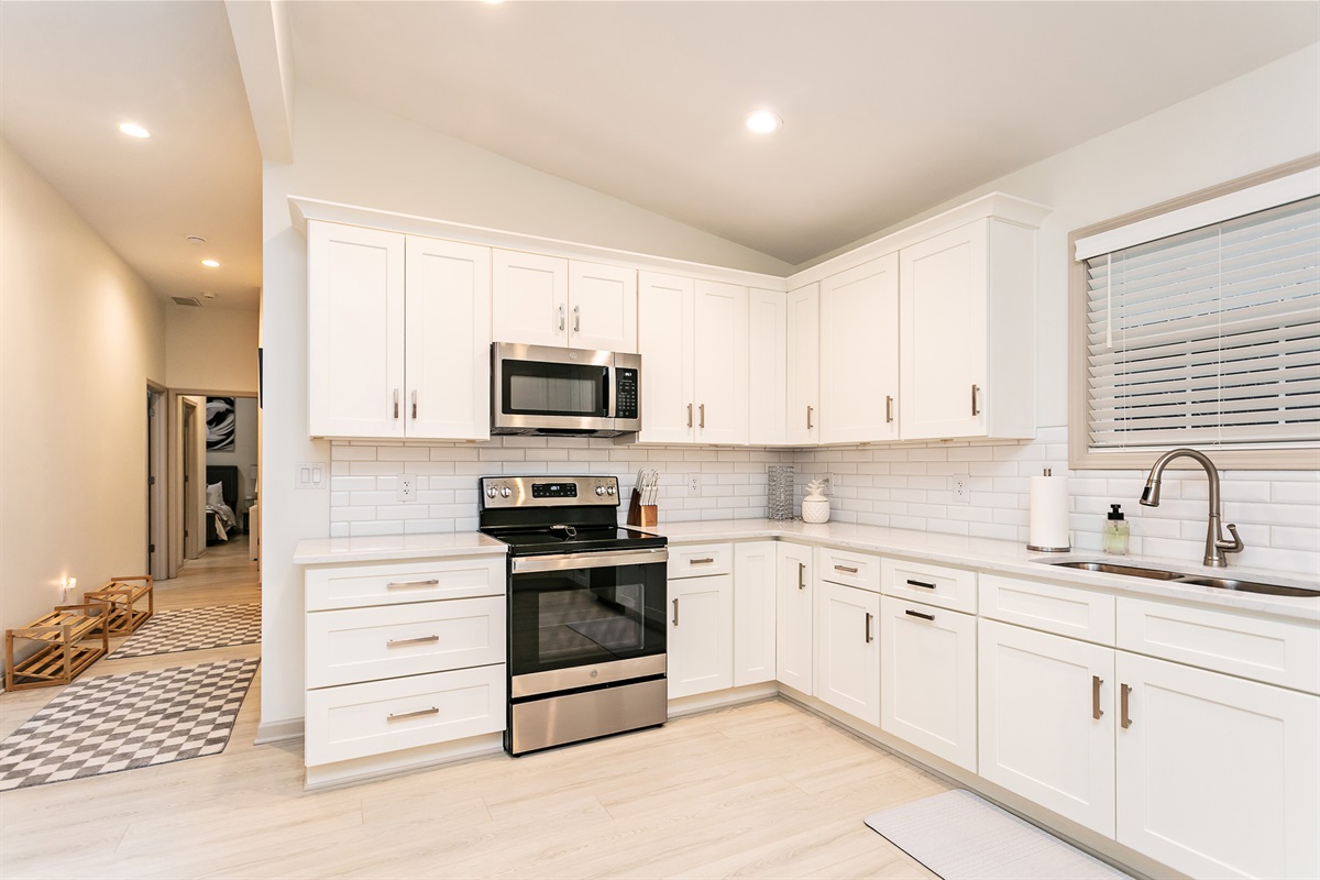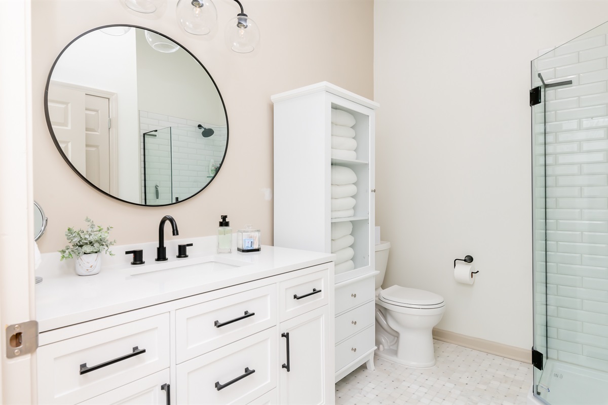The bedrooms (2 Kings, 3 Queens) each boast the comfiest bed linens we could find, with fluffy pillows as well as all 4K Smart TVs. The bathrooms are well lit, spacious, and sparkling clean.