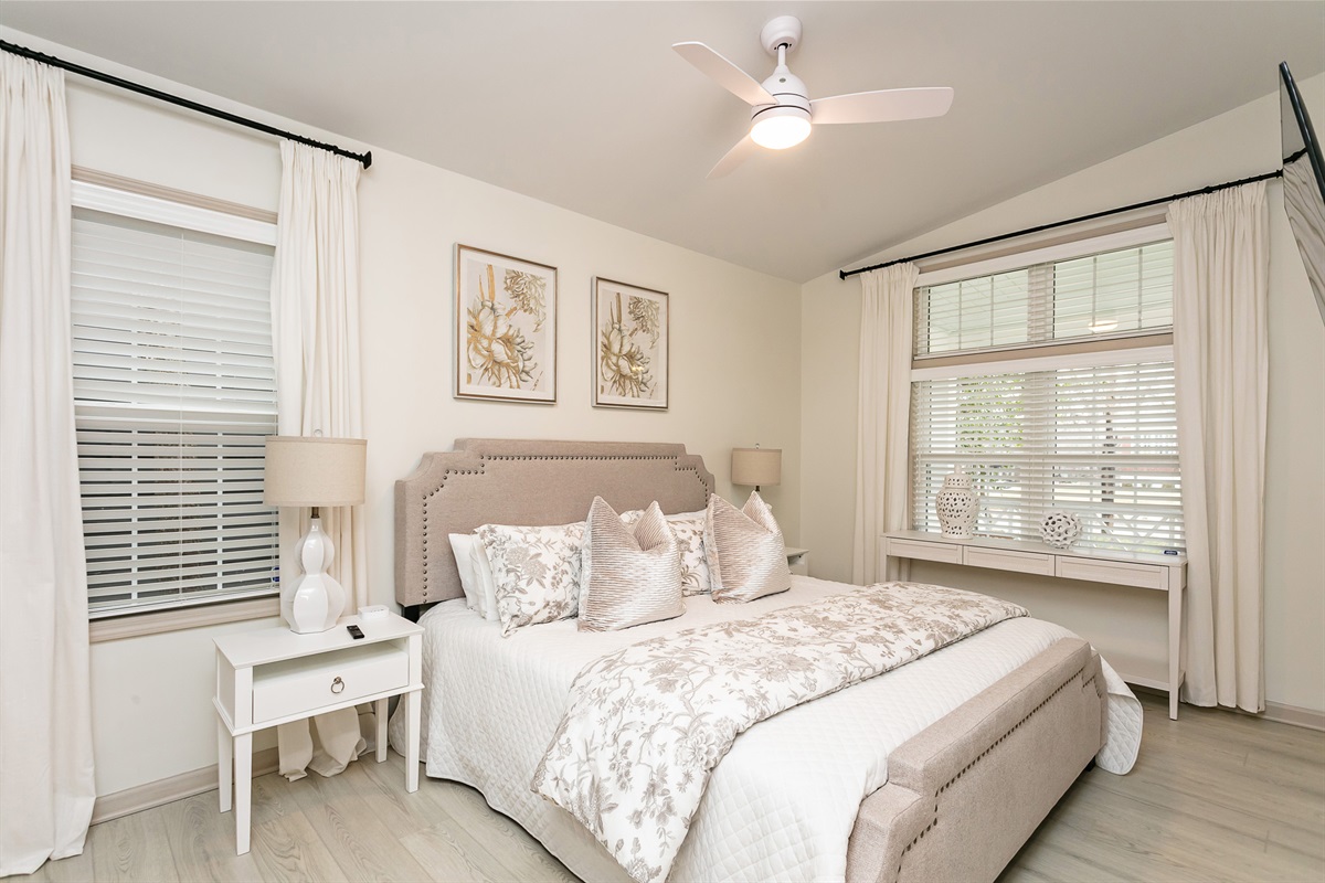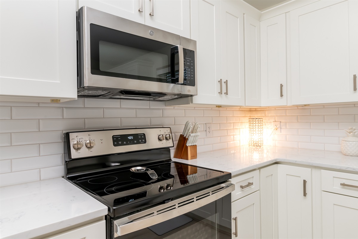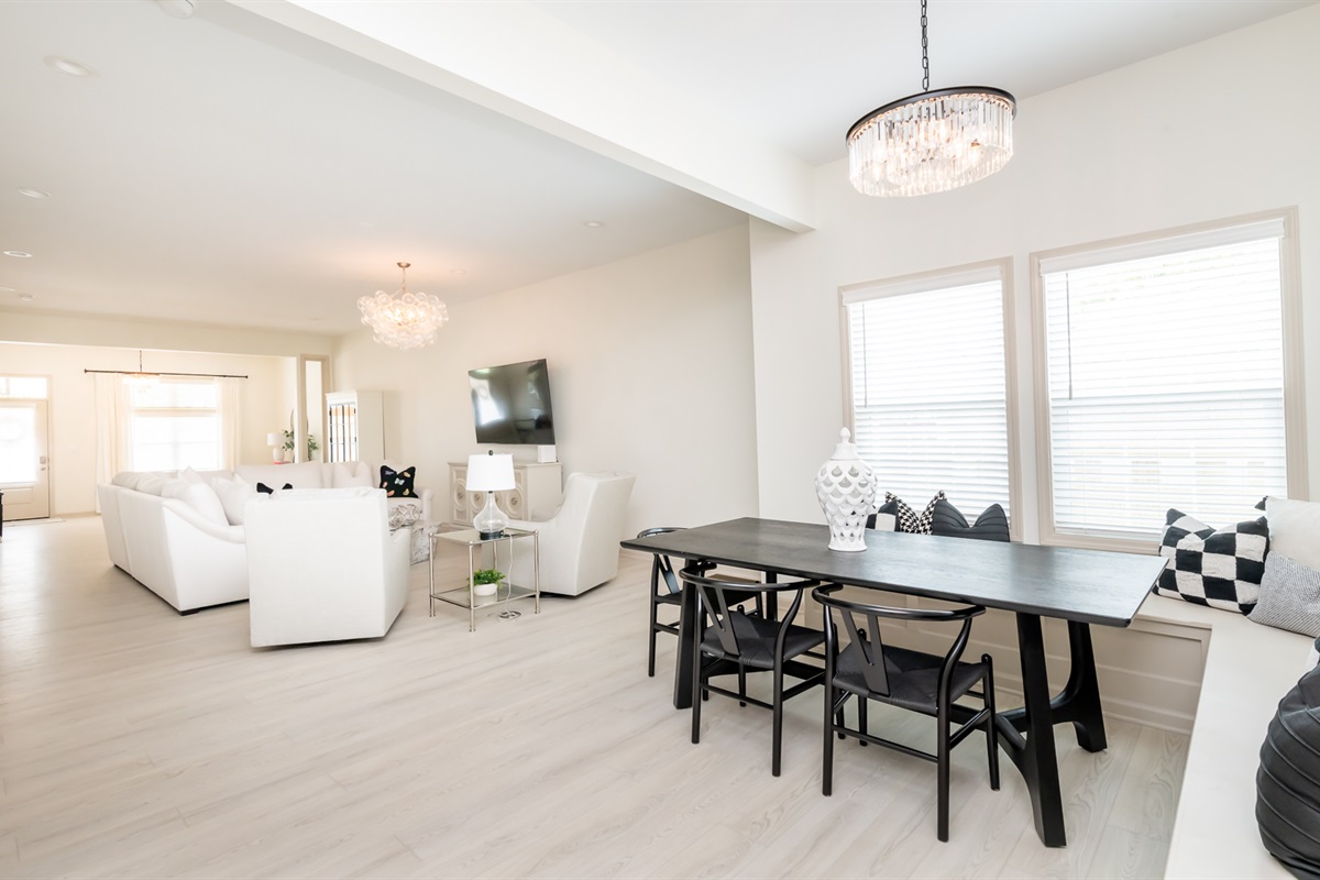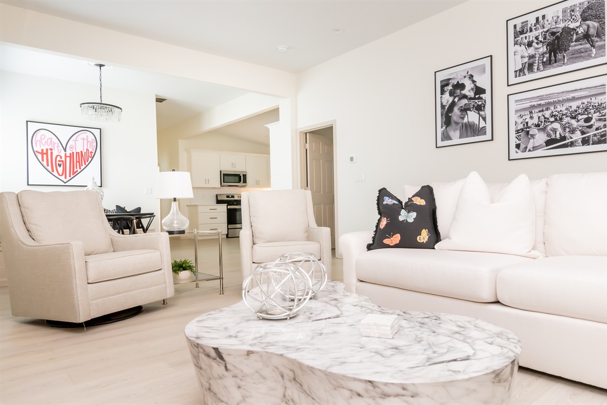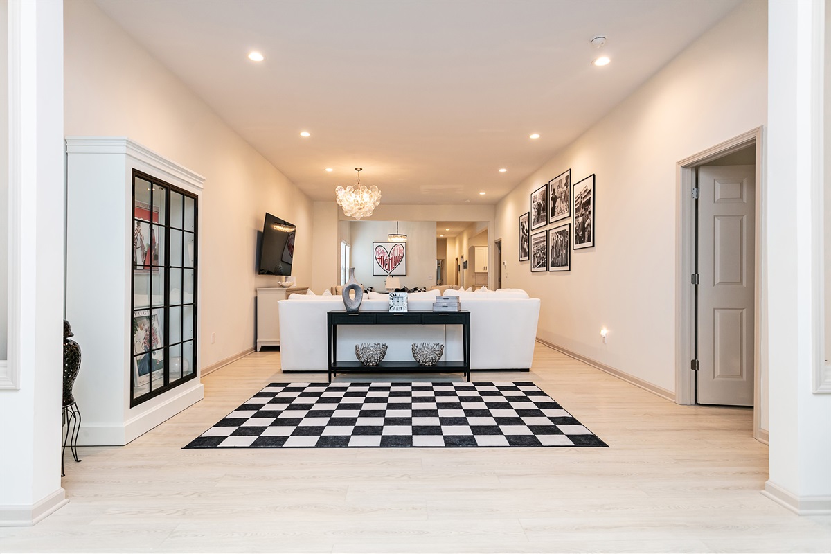 The bedrooms (2 Kings, 3 Queens) each boast the comfiest bed linens we could find, with fluffy pillows as well as all 4K Smart TVs. The bathrooms are well lit, spacious, and sparkling clean.