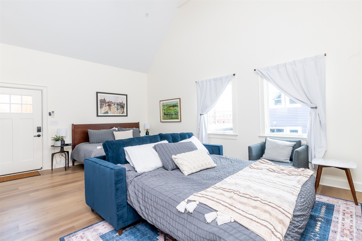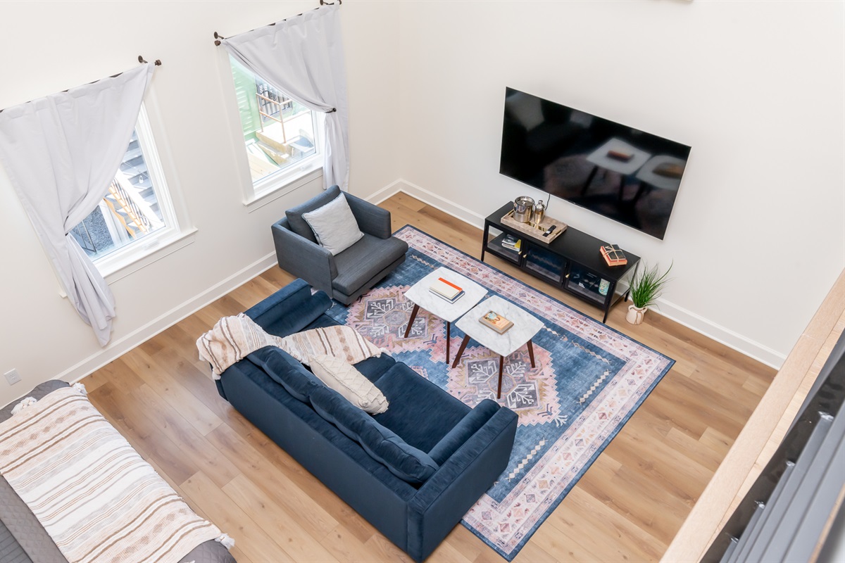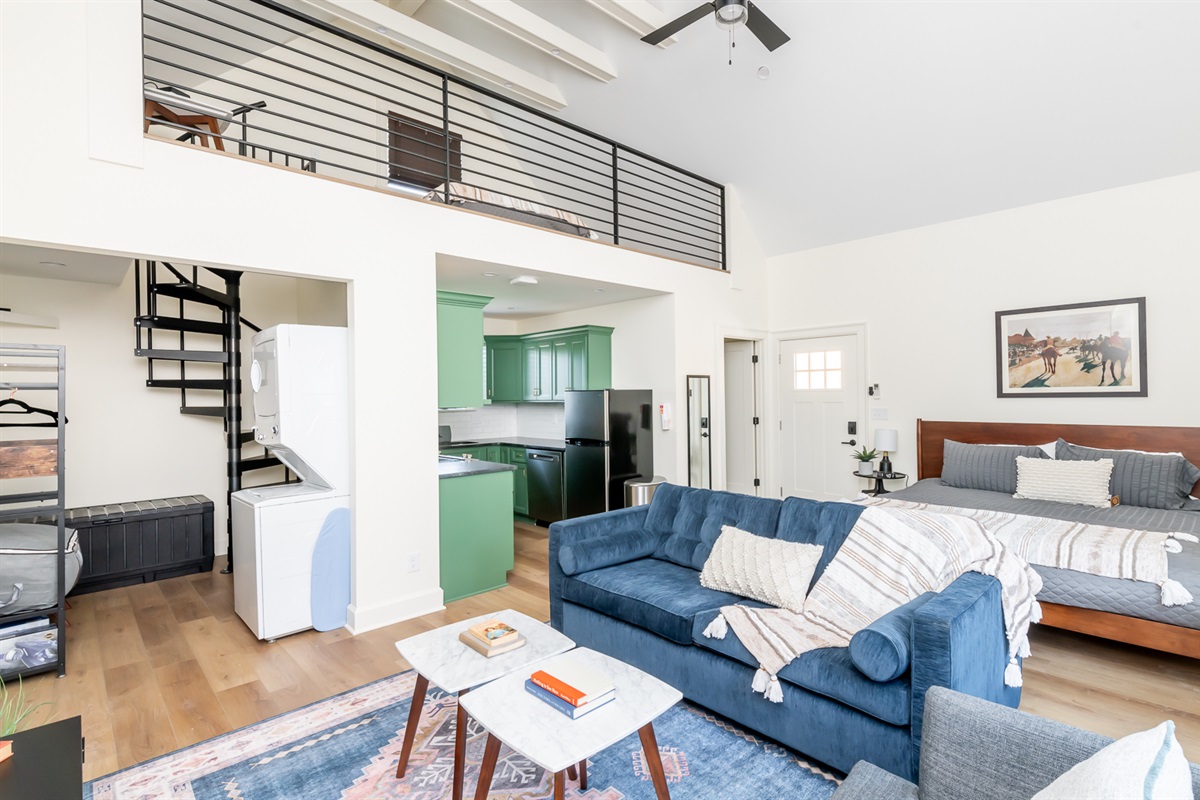 Introducing "Rickhouse Loft" by BNB Louisville. Rickhouse Loft @Tartan House is a bright and airy studio loft featuring all the best amenities for a short or long term stay. The open living space boasts a comfy king bed Plus Queen sofa bed, full kitchen, bath and laundry. A spiral staircase leads to the private loft with Double Bed. Prime location near the best bars, restaurants and the Ville's top attractions. Also on site is the elegant new Whiskey Lounge, Tartan House, serving a curated list of spirits and luxury cocktails in a refined setting.
