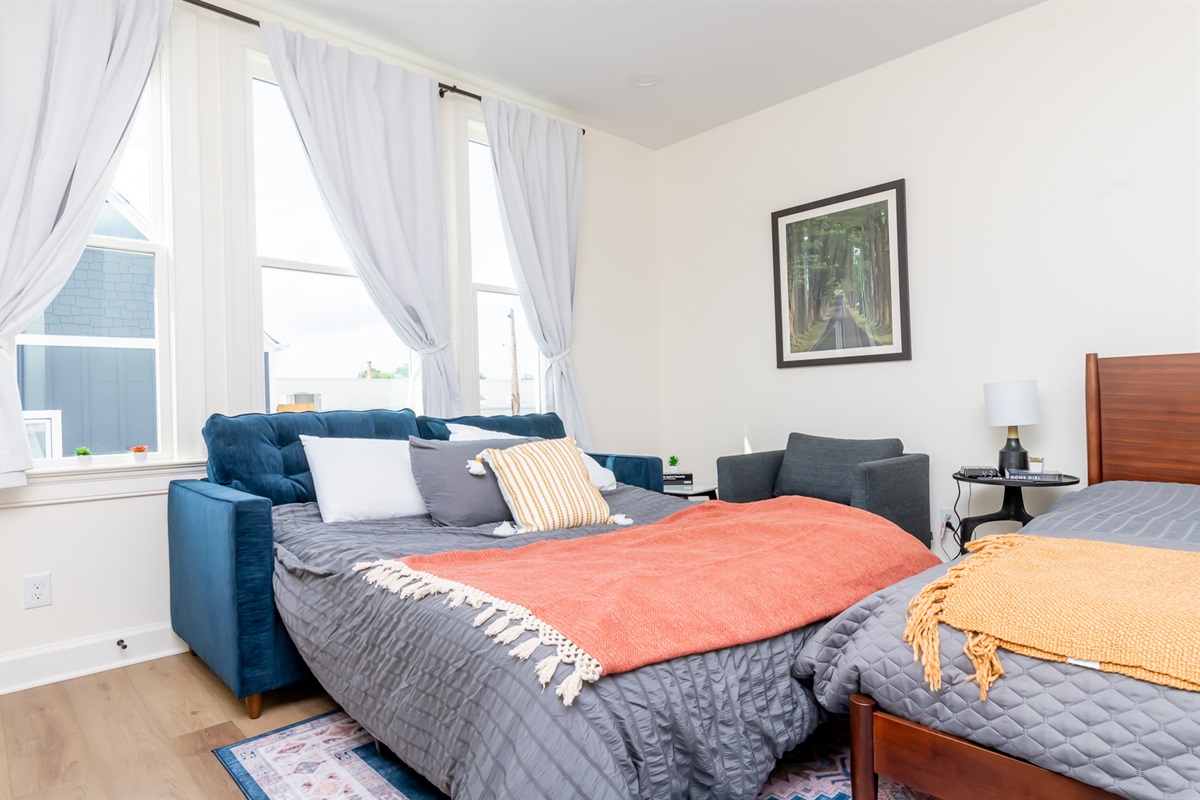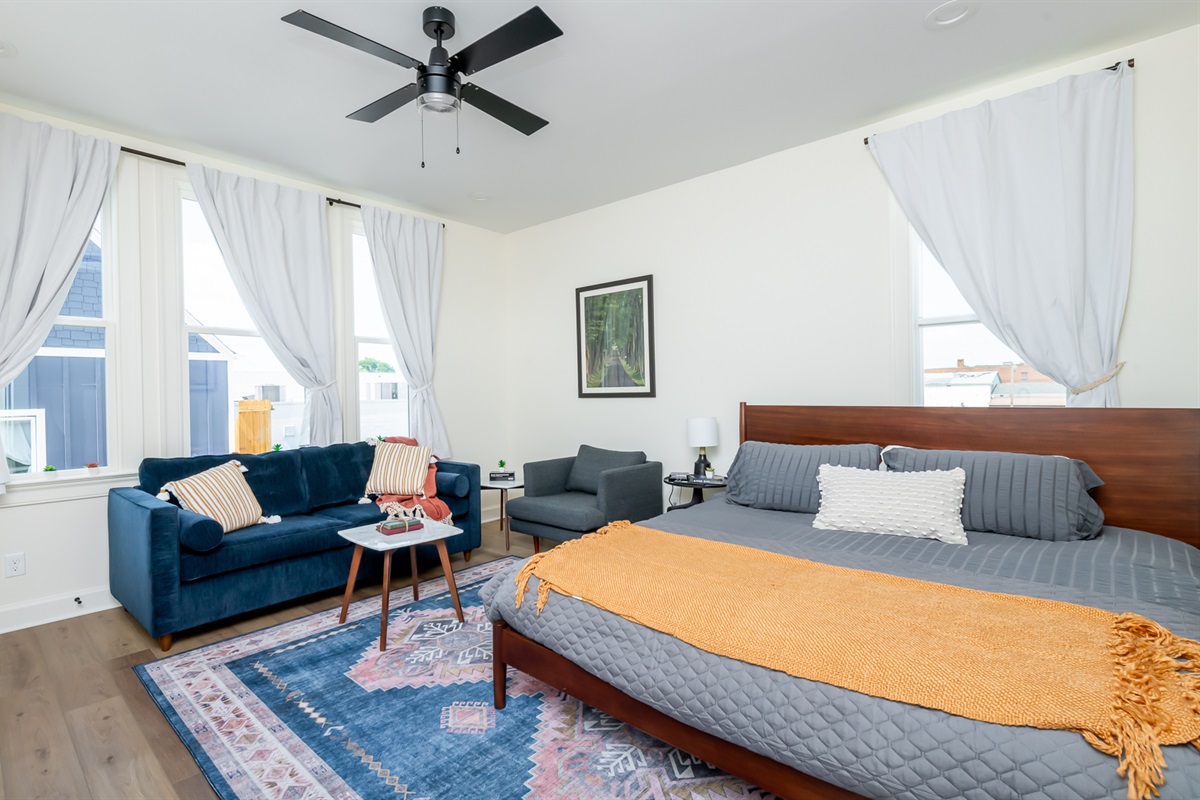 Open concept studio with tons of space for 2 and a queen sofa bed for additional travelers.