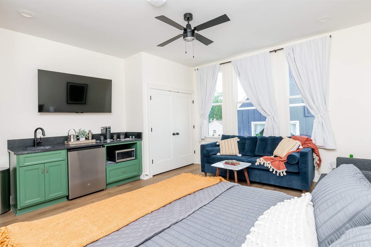Discover "Single Malt" with BNB Louisville. Single Malt is a spacious modern studio at Nulu's hottest new short term rental destination. The open and bright space features one King bed and one Queen sofa bed and all the best amenities for your comfort. Kitchenette with microwave, coffee bar and mini-fridge complete the space. Comfortably sleeps 2-4. Situated in a prime location near the best bars, restaurants and the Ville's top attractions.