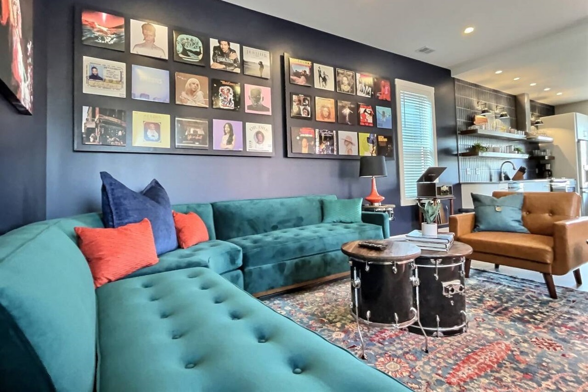 Music “anthemed” suite with elements from Notorious B.I.G. to Elton John. Vintage-style record player included.