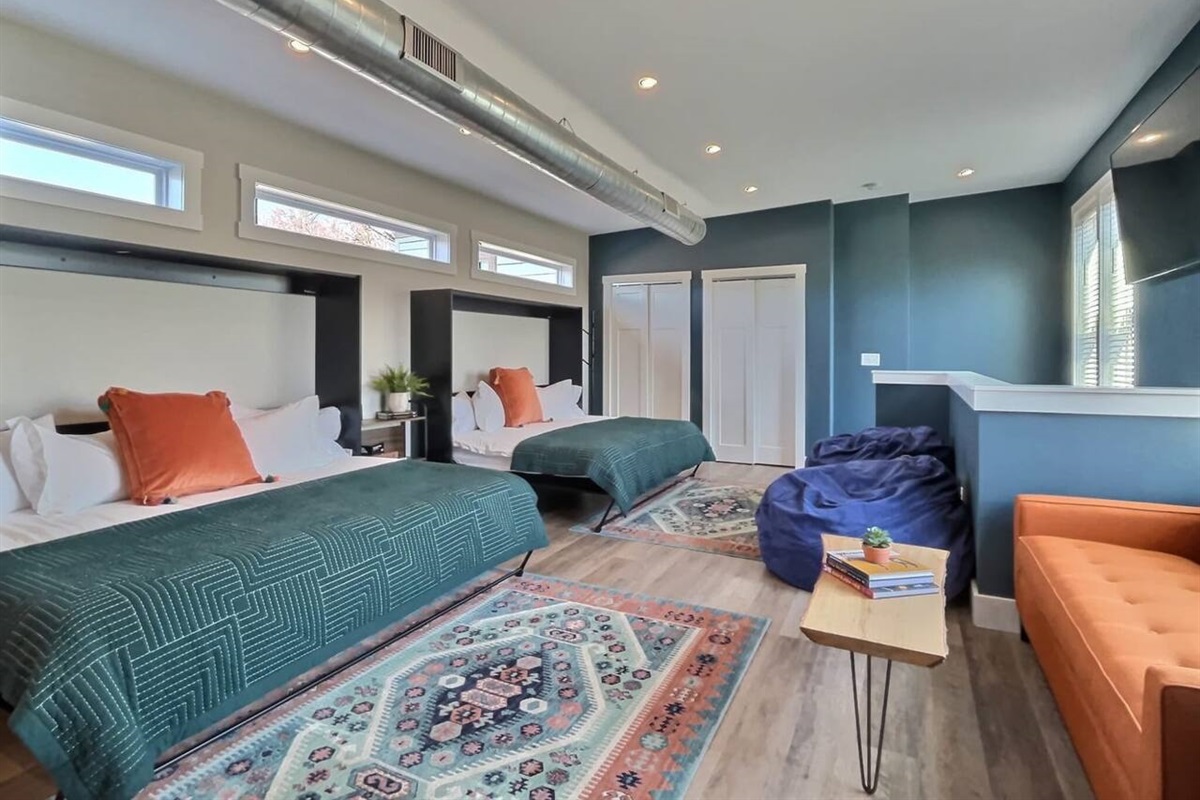 • Beds: 1 Queen Bed | 2 Kings (One is a unique KING BUNK BED!) | 1 Sleeper Sofa