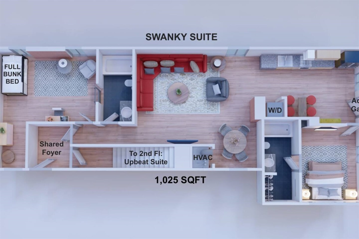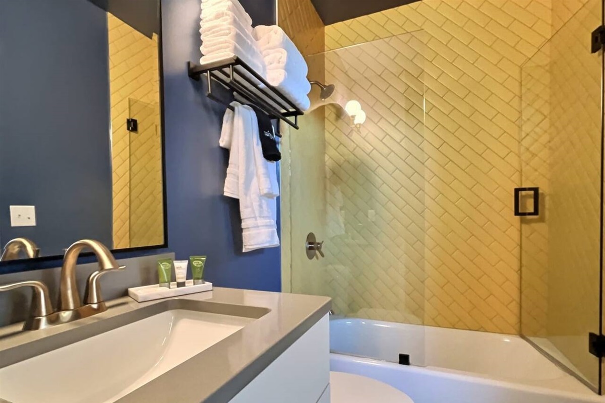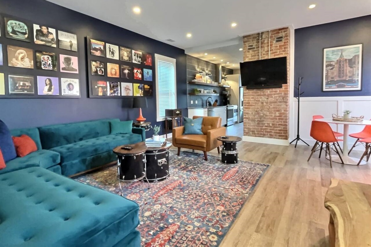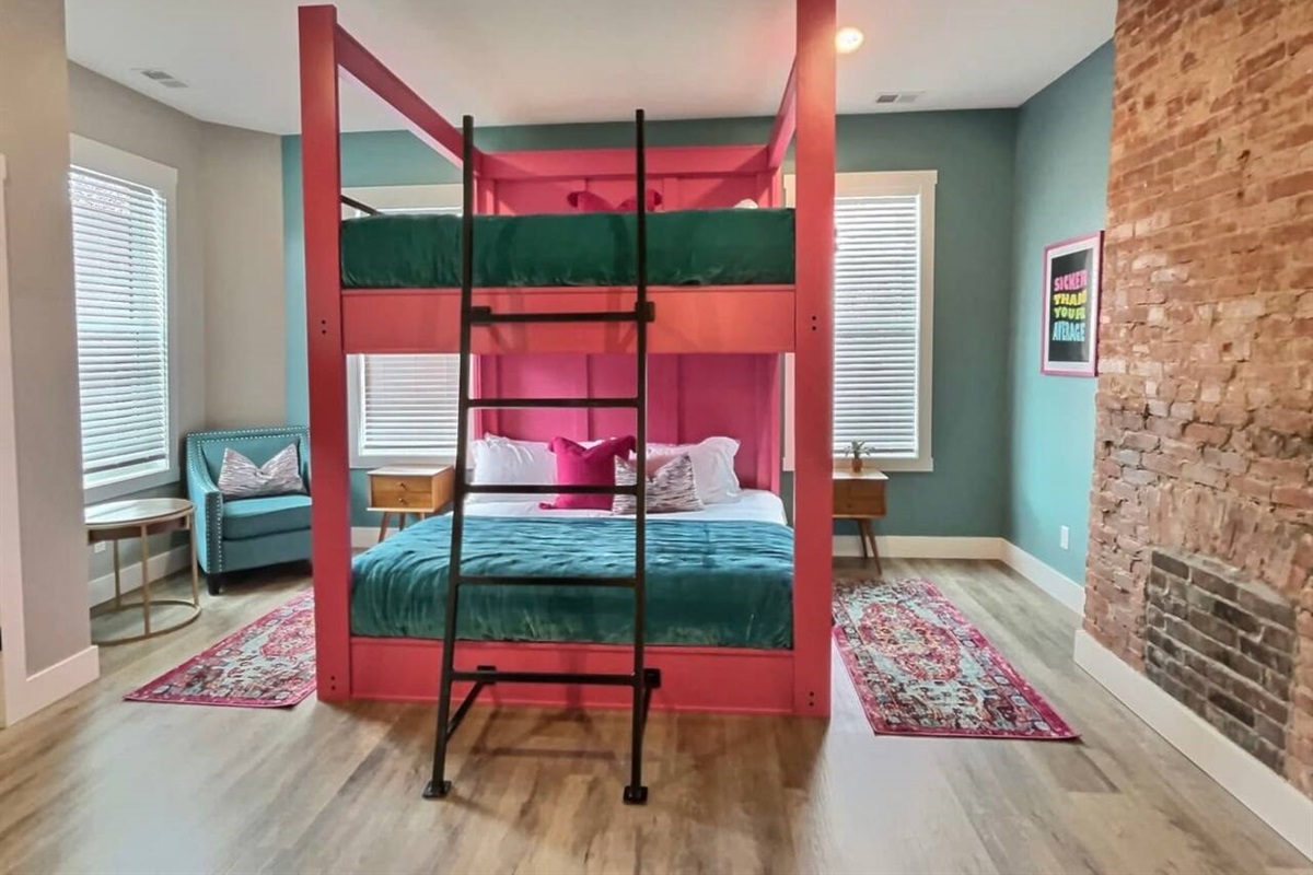 Rock-n-Roll in the front bedroom that is composed of a one-of-a-kind King Bunkbed…yes, your heard that correctly…KING BUNKBED! A supporting Full bathroom reveals dual sinks, fresh white tile and tantalizing Lotus Flower Bomb wallpaper. Hip, or hop, to the 2nd bedroom that comes furnished with a Bohemian Rhapsody Queen bed. The accompanying bathroom offers notes of Elton John credits to the Blue Jean Floor and Yellow Brick Road running up the shower surround. No need to refrain, or Stop In The Name of Love…book your stay and consider it a rap!