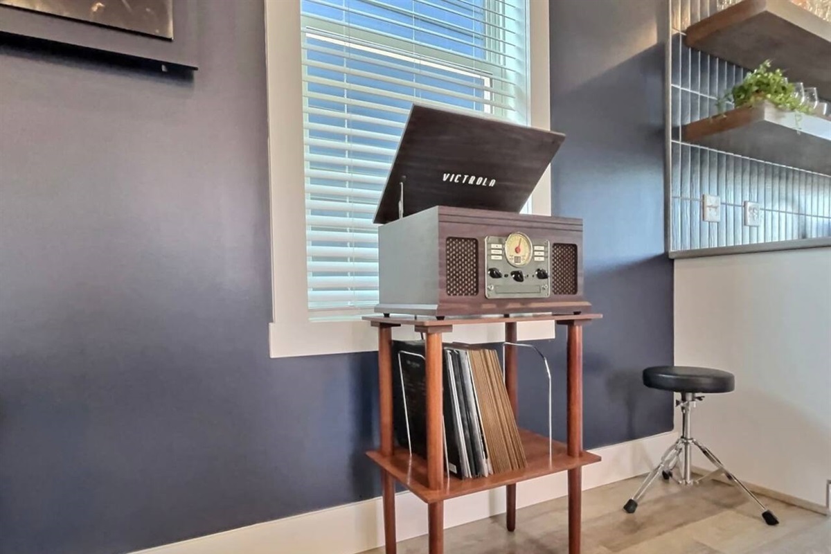 The ultimate crescendo of our “Stay-n-Play”. Whether you’re on a Highway to Hell or Stairway to Heaven, you can turn up the volume in this 1,075 sqft music “anthemed” suite with elements from Notorious B.I.G. all the way to Elton John. Our hypnotizing Album Wall showcases 30 unique vinyls that span multiple genres and decades with some of music’s most iconic hits. Feeling well-versed? Take a spin on our vintage-style record player stocked with all your favorite tunes.
