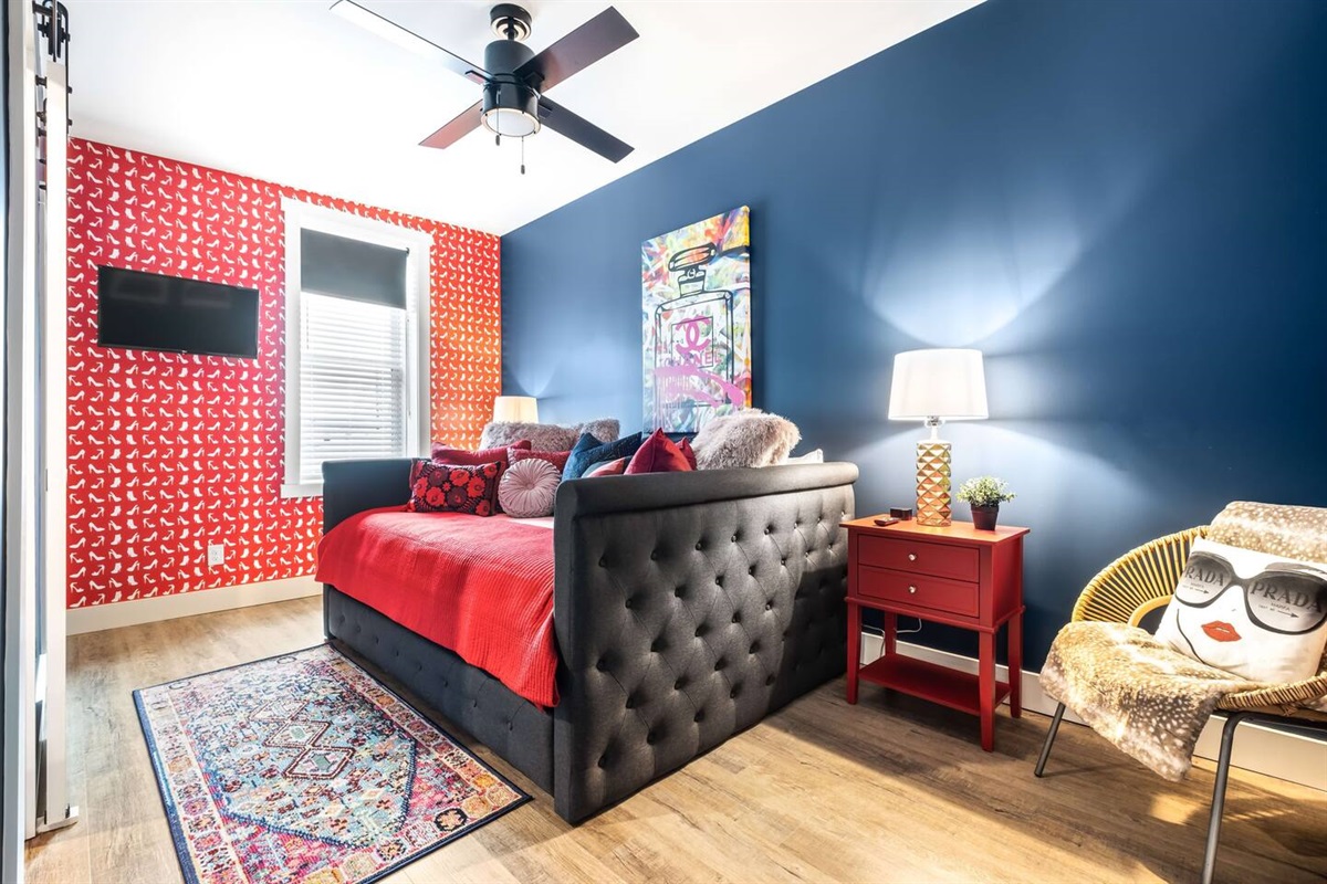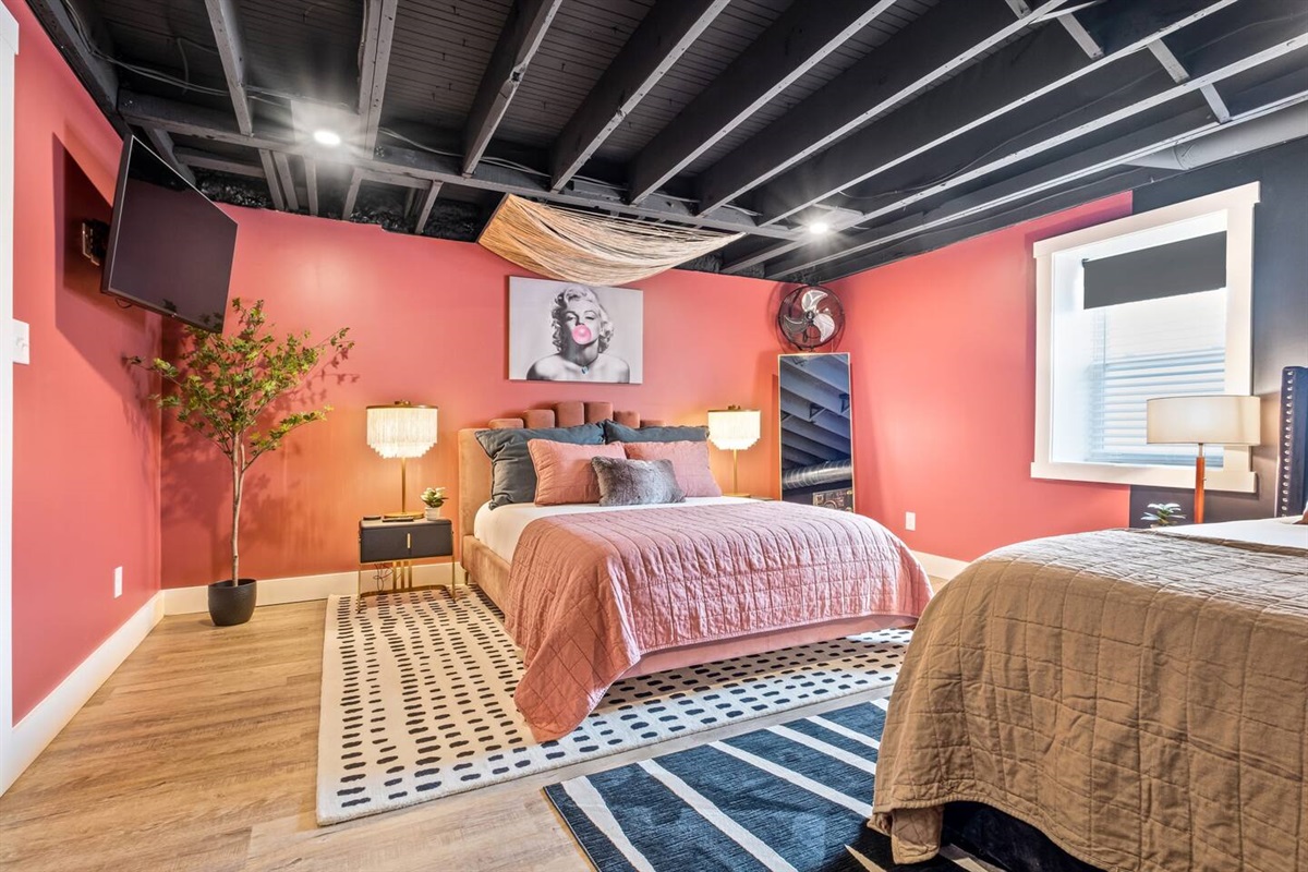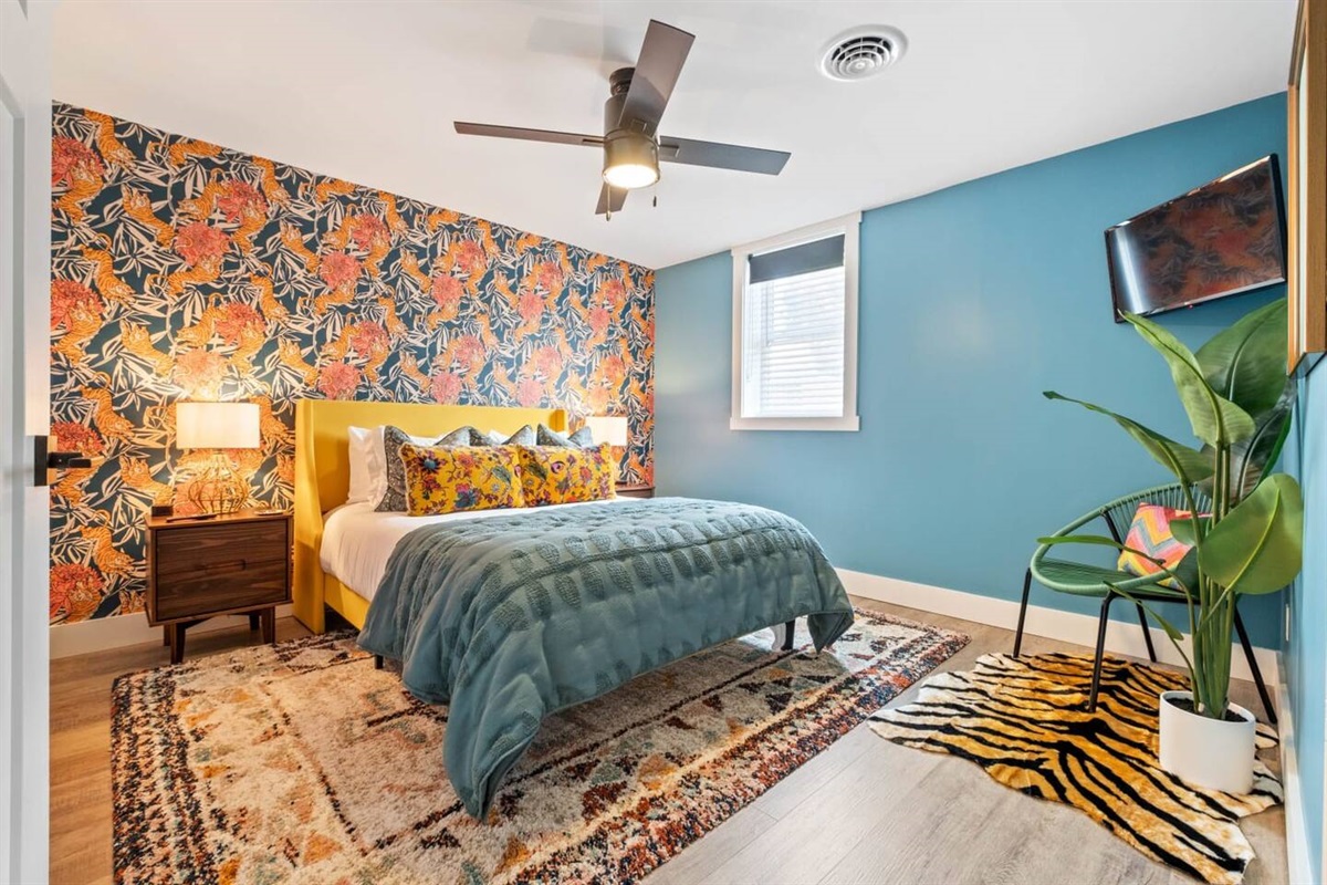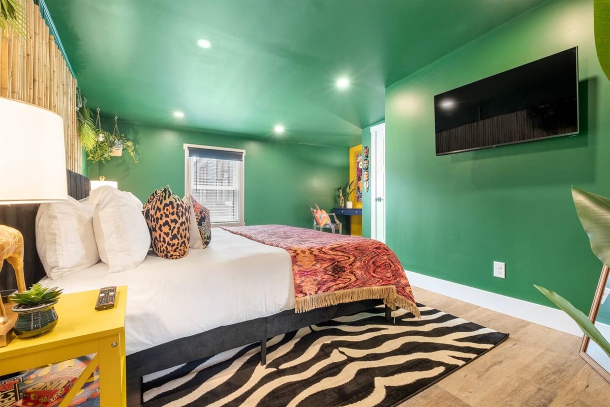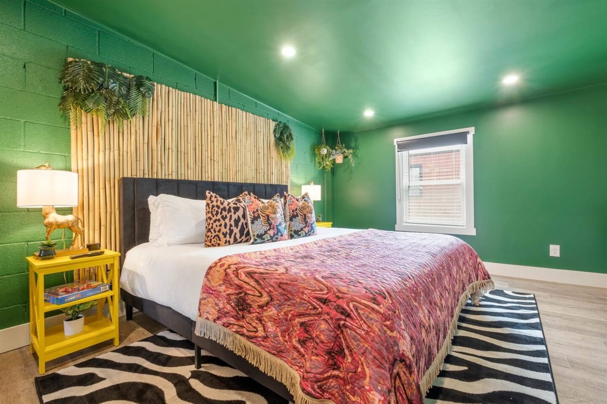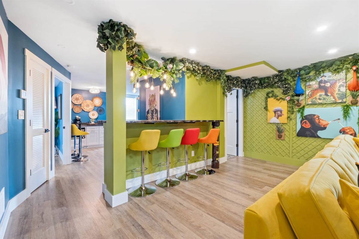 The hunt is over! Come monkey around in our infamous Jungalou @ Bungalou that promises to deliver a big-game feel thanks to 1,200+ SQFT that spans across a lush and outlandish wilderness. This 2nd floor canopy welcomes you to a tropical climate with hanging chairs, thicket walls and exotic bathrooms sure to impress any King of the Jungle. A full-sized watering hole (kitchen), bar top seating and an expansive living room makes entertaining is a breeze. Whether you’re a nocturnal creature, or just seeking hibernation, you’ll appreciate the 2 plush habitats furnished with memory foam beds for nesting. You’d be lion-to-yourself if you did not migrate your flock to come experience this wild expedition. Hurry up before your desired dates become extinct!