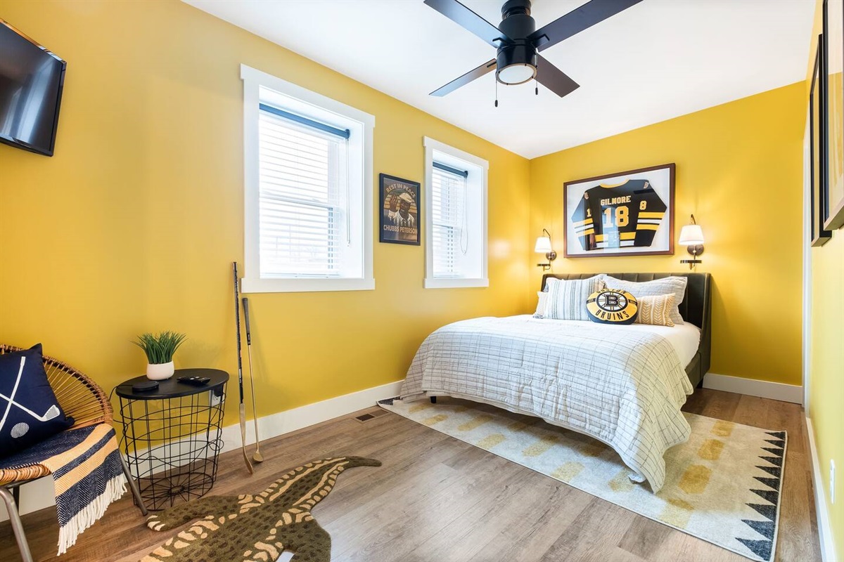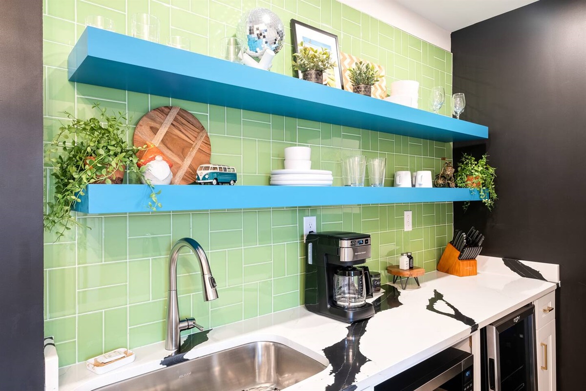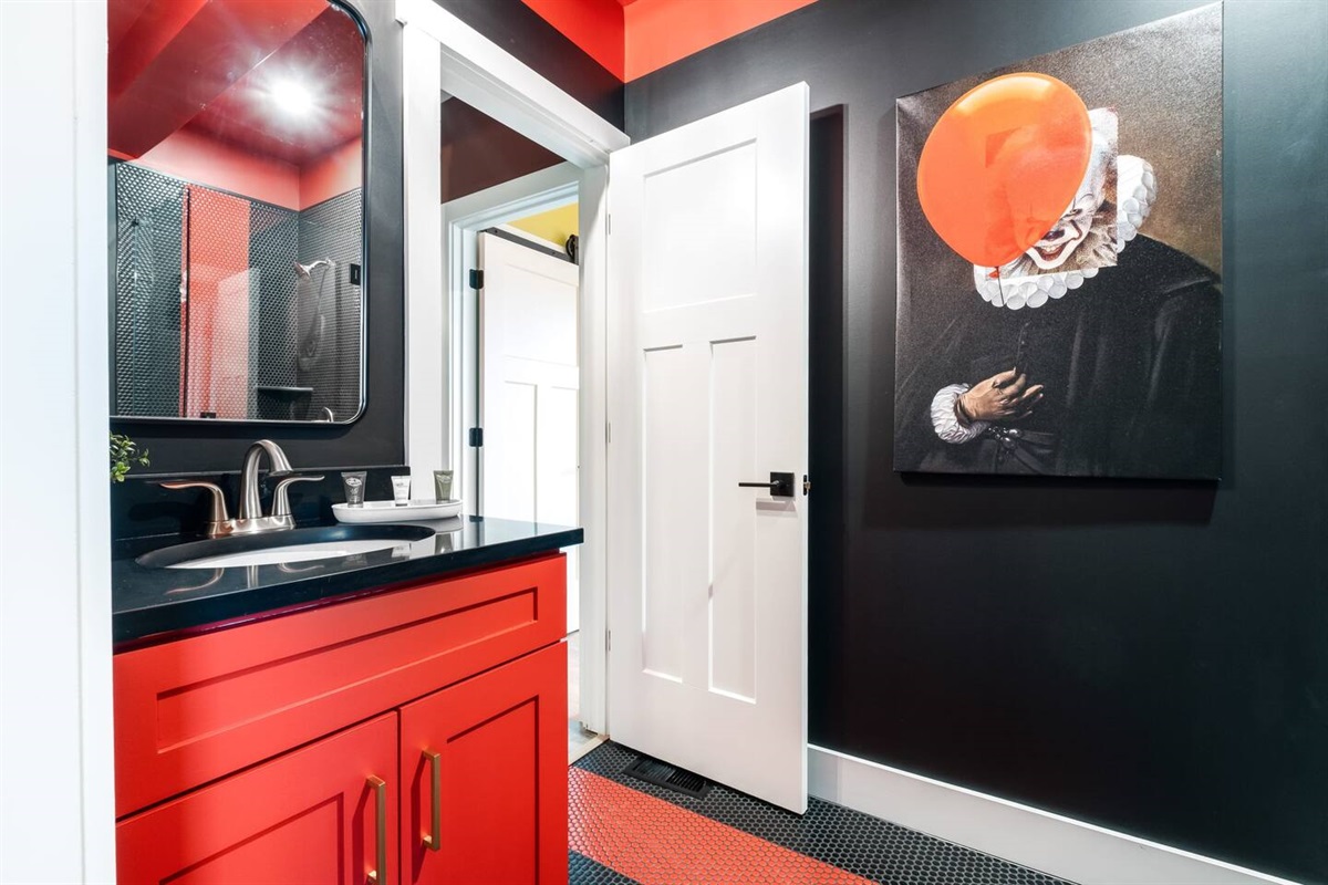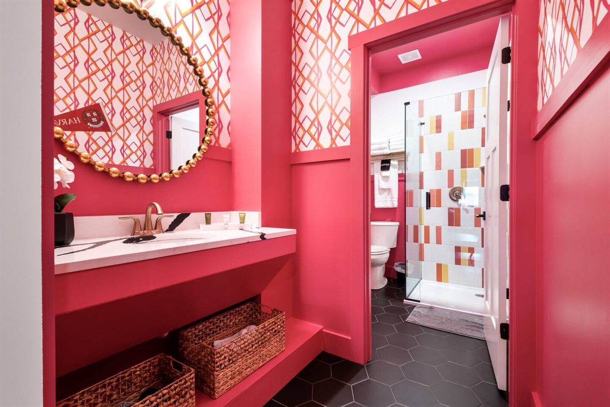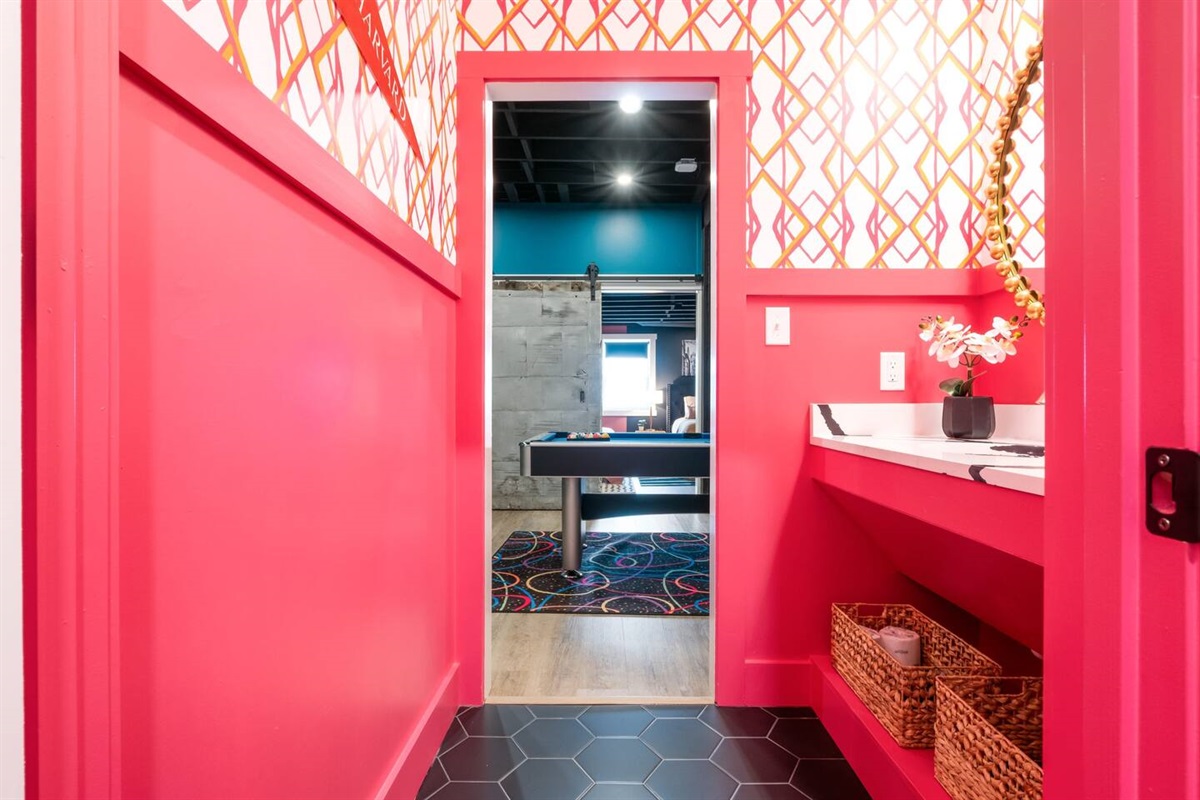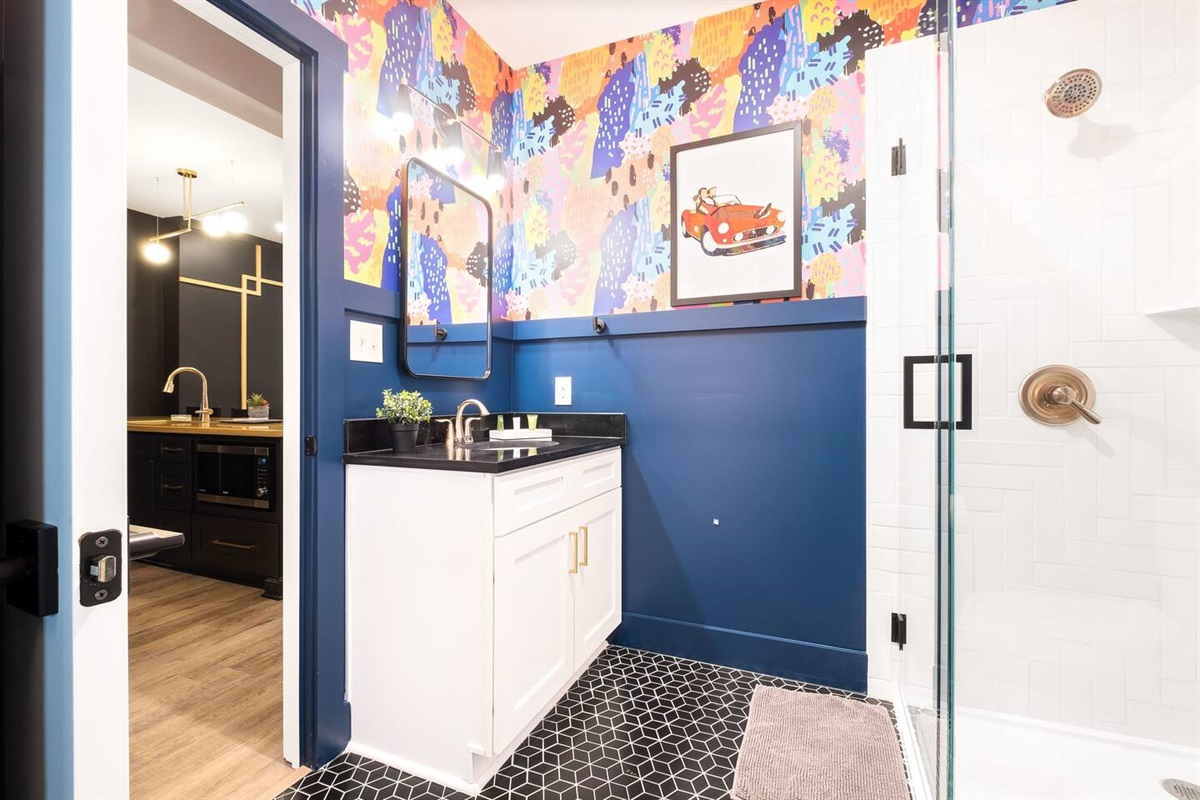 Positive vibes radiate throughout this 325 sqft Funky+Fresh joint. A Groooovy, Kaleidoscope wall floats behind a blissful King Bed that promises all the feels of peace, love and happiness. Trippy, lime green tile runs the full length of the kitchenette backsplash…because…why not?? Plus, a mini-fridge and microwave ensures you’ll be well-equipped for those late-night munchies (farrrr out!). “Flower Power” is bursting from the seams of this ensuite that would surely make John Lennon blush. No longer be dazed-n-confused…stay here and we’ll catch ya on the flip side. Peeeace!