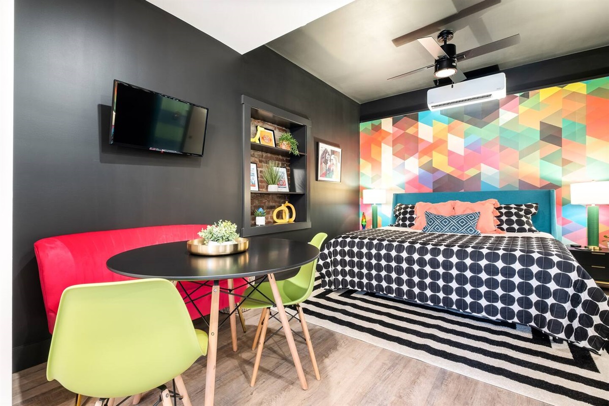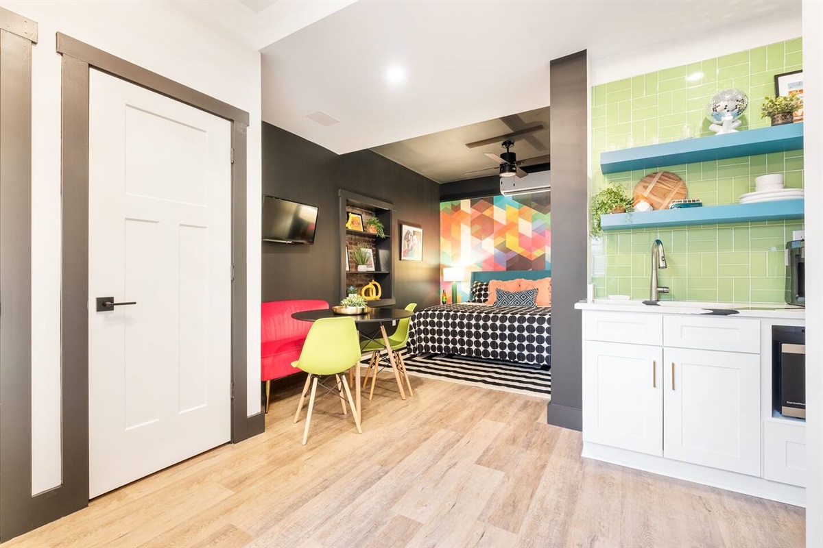 The name rolls off your lips, doesn’t it? But don’t be fooled honey, this isn’t your typical cookie-cutter studio that will leave you feeling bittersweet. No need to sugarcoat it…this 275 sqft studio easily flaunts a sprawling King Bed, a delectable Kitchenette, 2-seater dining table and an appetizing Full Bath dripping in a syrupy-sweet sensation. Modern, cozy, entertaining and refined like sugar (not that fake stuff). Come stay with us and call this abode “Home Sweet Home”.