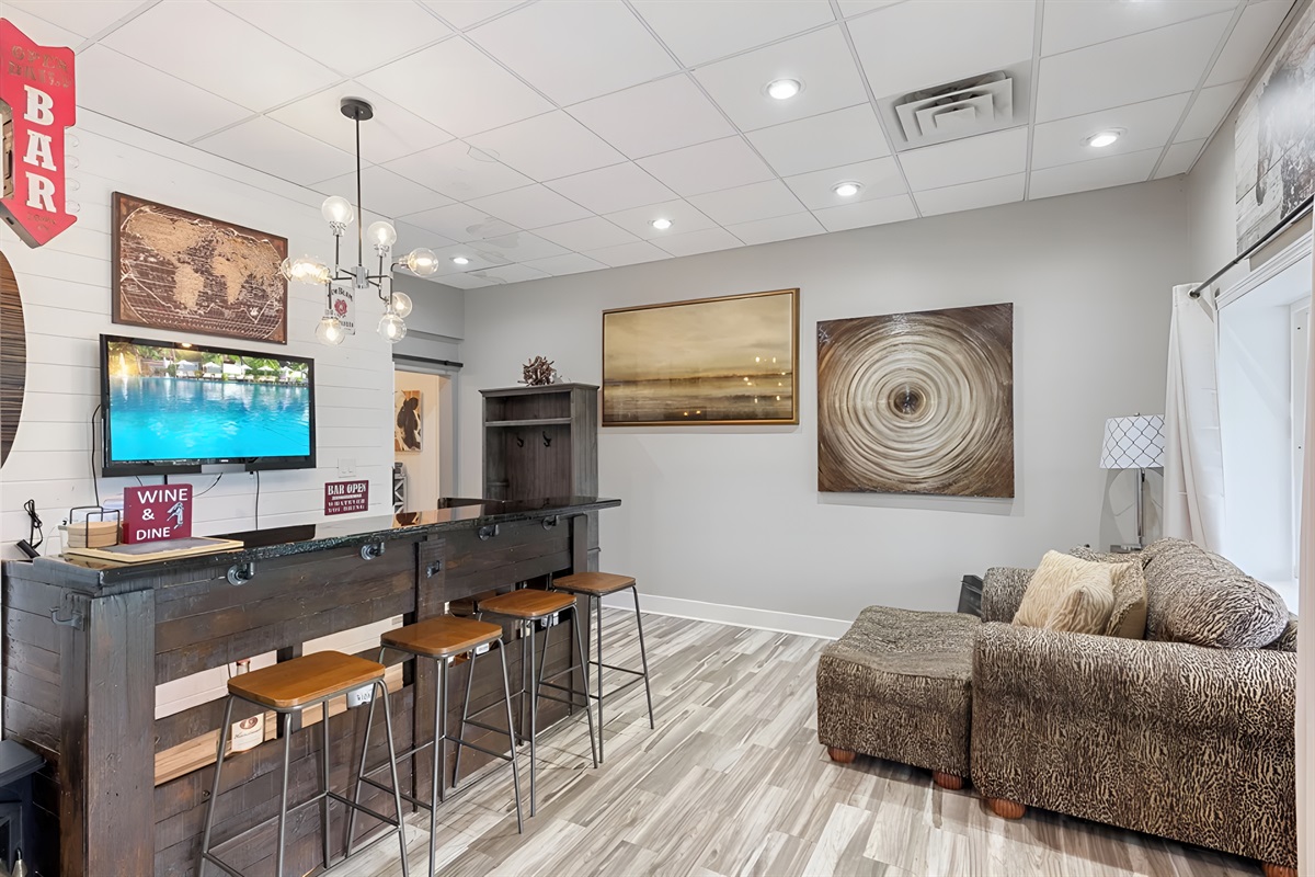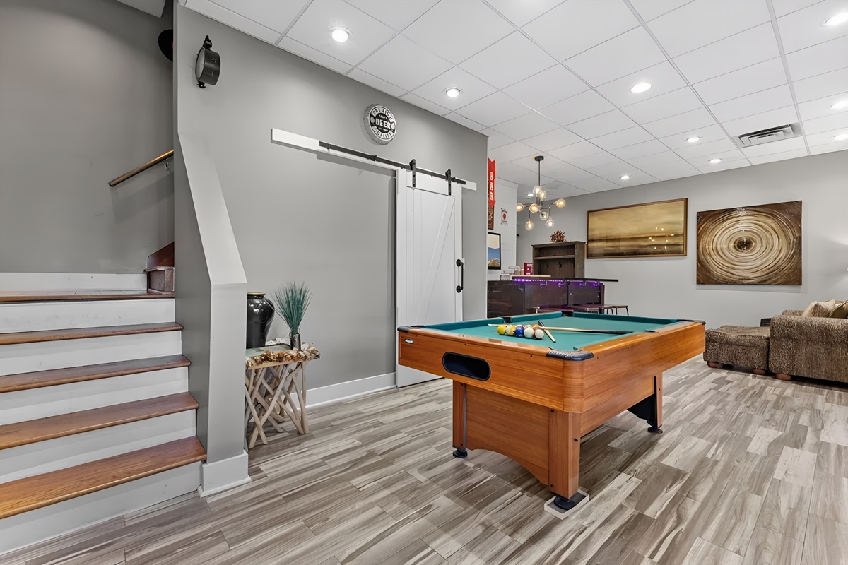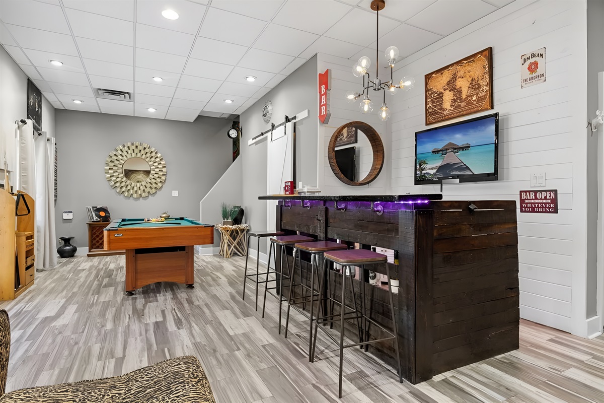 Perfect for groups of up to 12 guests, this home is designed to keep the good times rolling. Step inside to find a stylish pool table that sets the tone for endless fun, right next to a sleek bar area perfect for crafting your favorite cocktails. The heart of the home lies on the second floor, featuring a modern kitchen stocked with top-of-the-line appliances and a spacious living room with a sectional sofa ideal for movie nights.
