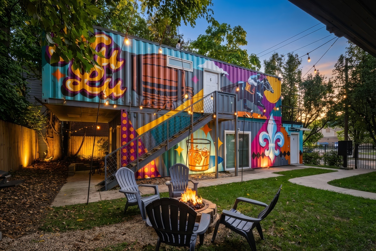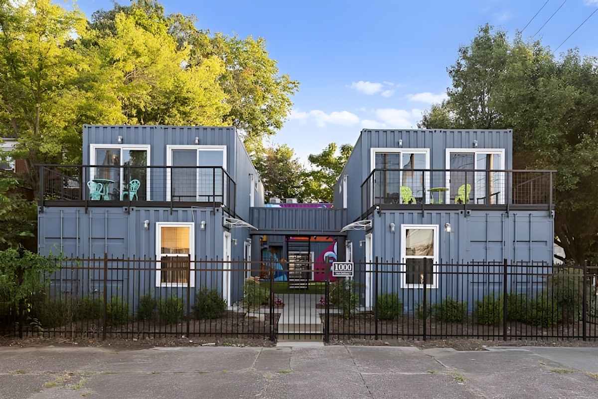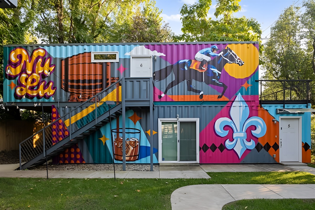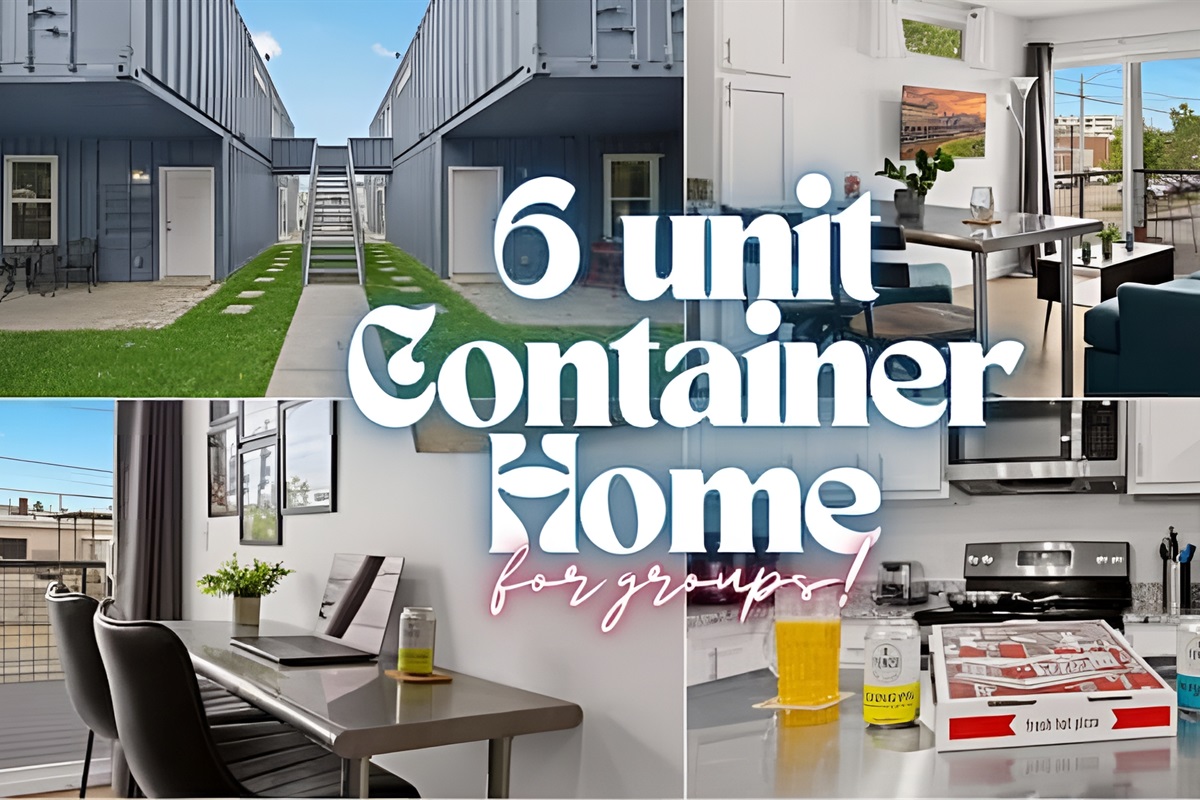 Welcome to a one-of-a-kind eco-friendly container retreat featuring six private 1-BR units. This complex is ideal for families, corporate groups, or wedding parties traveling together! Each unit offers its own privacy with independent living spaces and kitchens, while the shared outdoor areas provide a great spot for the group to gather. Located just steps from the Urban Bourbon Trail and NULU's best dining, this retreat delivers the perfect blend of privacy and community in one stylish stay.