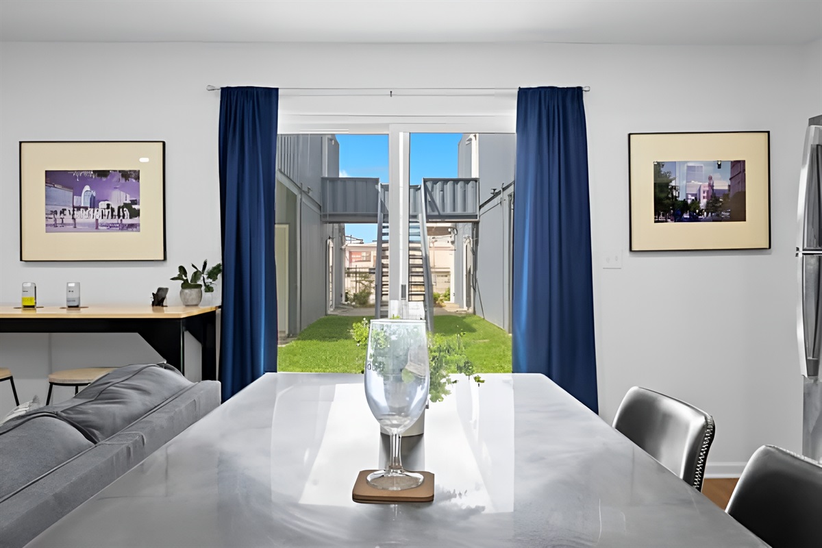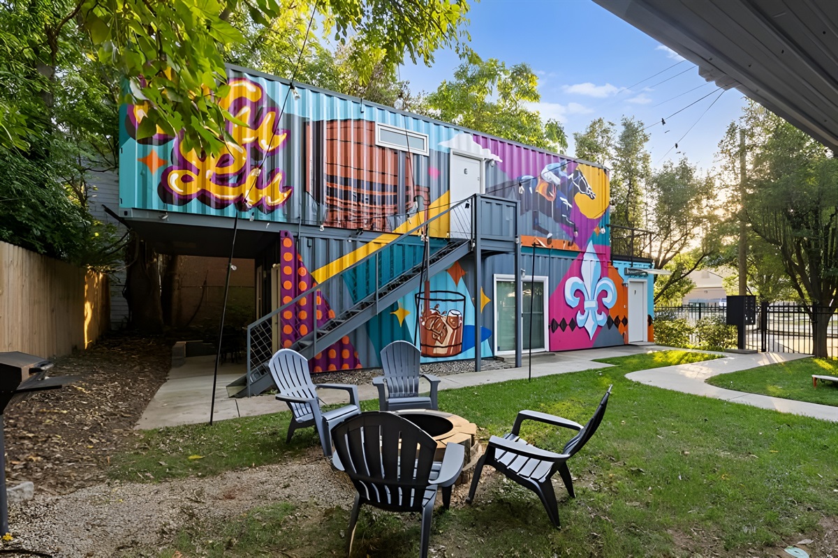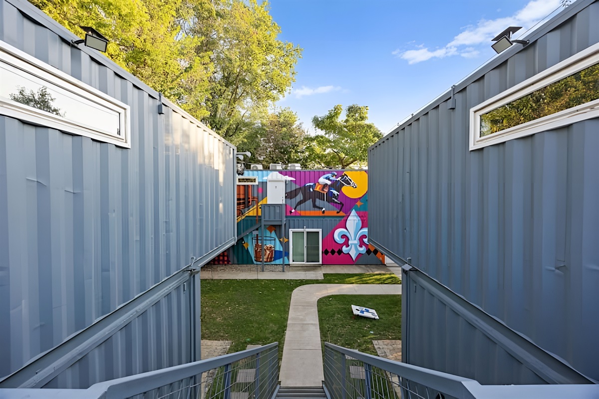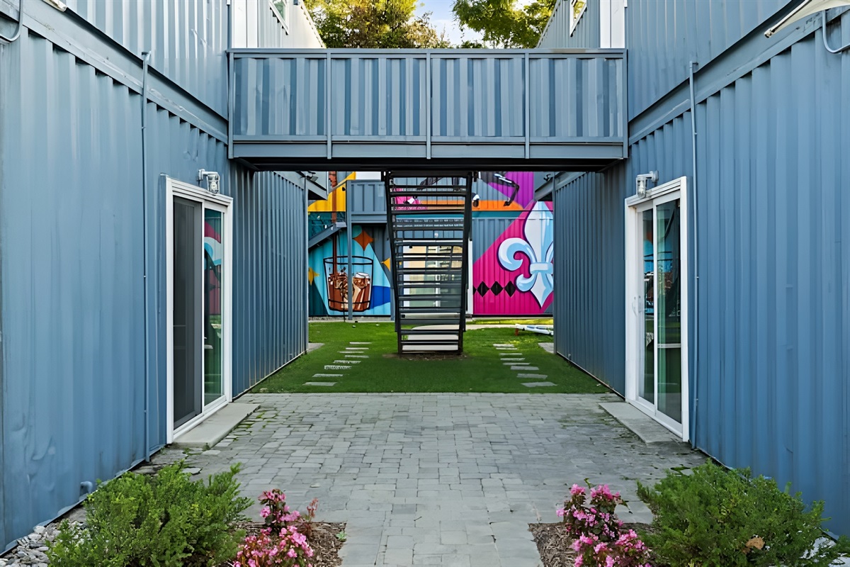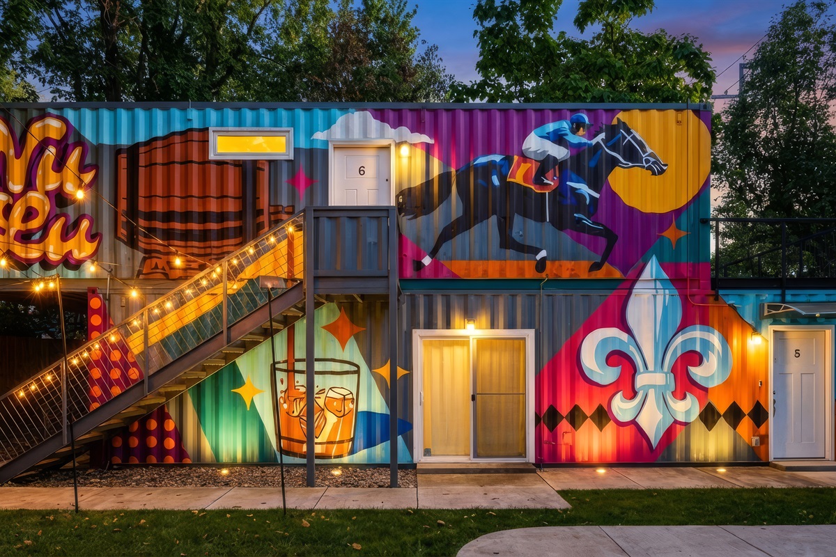 Welcome to a one-of-a-kind eco-friendly container retreat featuring six private 1-BR units. This complex is ideal for families, corporate groups, or wedding parties traveling together! Each unit offers its own privacy with independent living spaces and kitchens, while the shared outdoor areas provide a great spot for the group to gather. Located just steps from the Urban Bourbon Trail and NULU's best dining, this retreat delivers the perfect blend of privacy and community in one stylish stay.