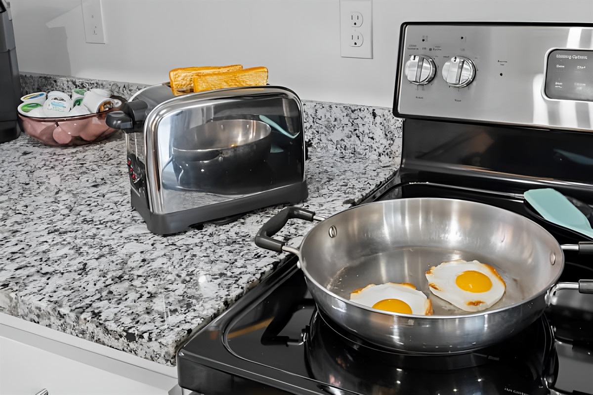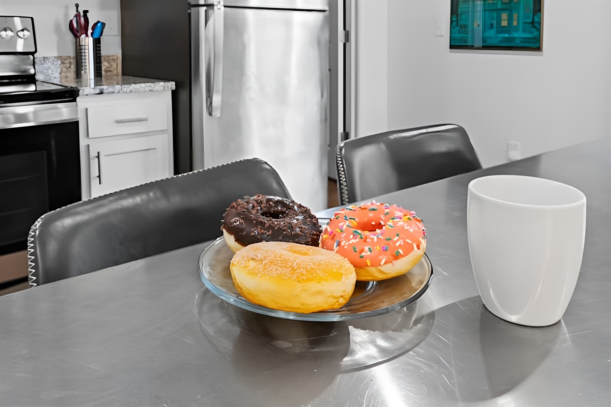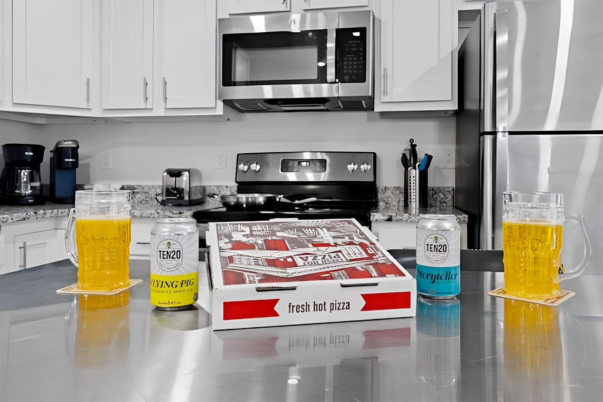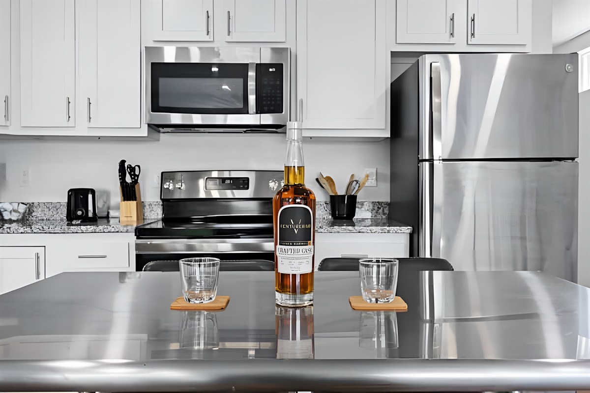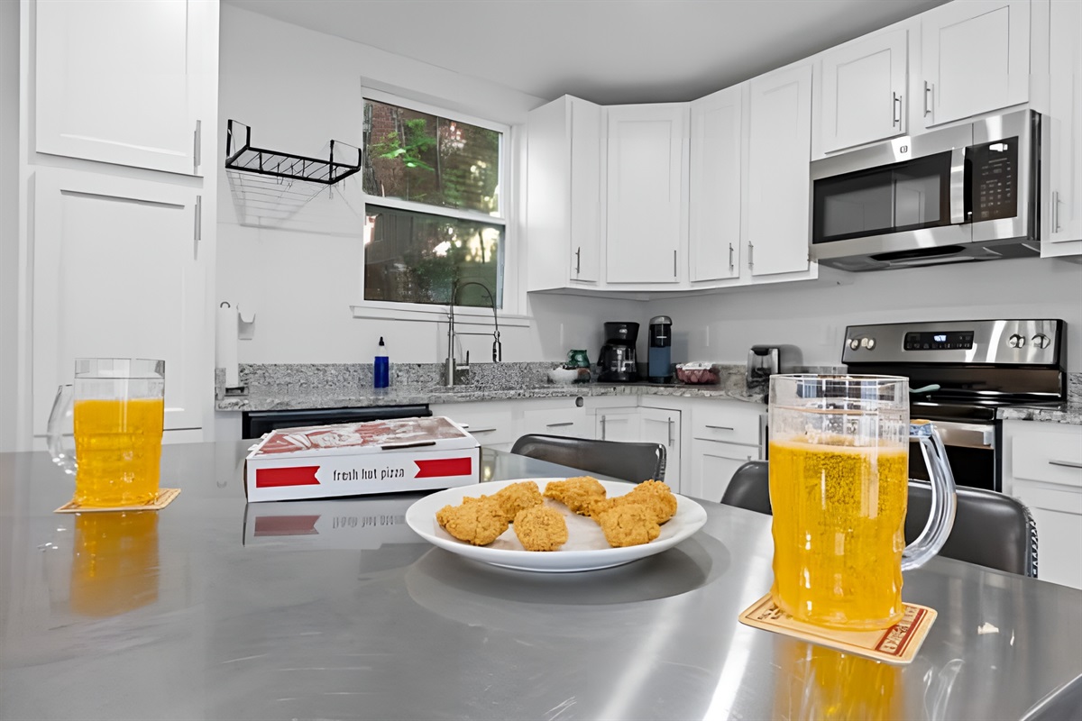 • Kitchen: Fully equipped with stove, oven, fridge, microwave, dishwasher, and both Drip & Keurig coffee makers.