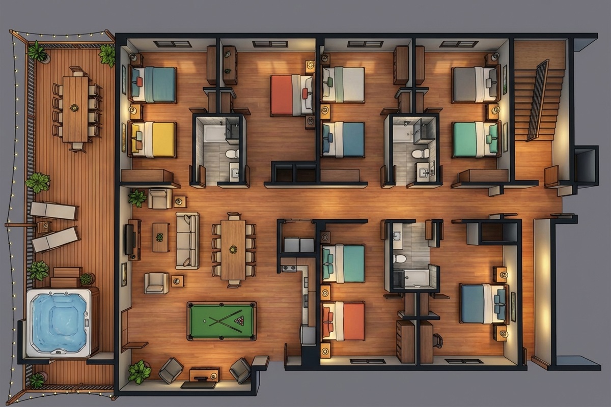 Guests can spread out, sleep comfortably, and still enjoy shared spaces without crowding.