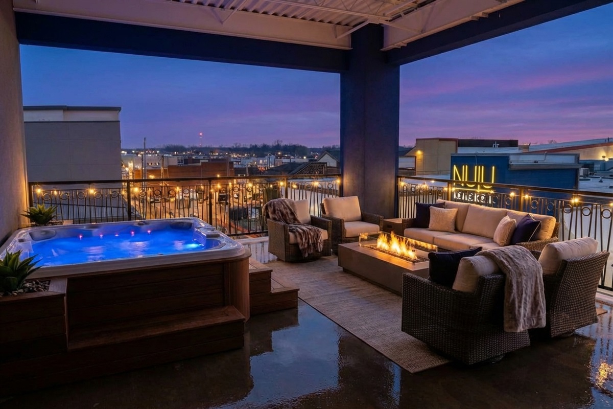 Enjoy a hot tub soak under the skyline after a day of exploring bourbon distilleries or downtown attractions. Gather around the fire pit in the evening for conversation, cocktails, and city lights. Stretch out on resort-style lounge seating or host dinner outdoors under the open sky.